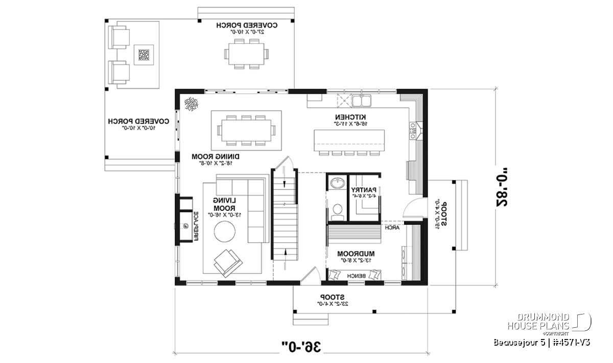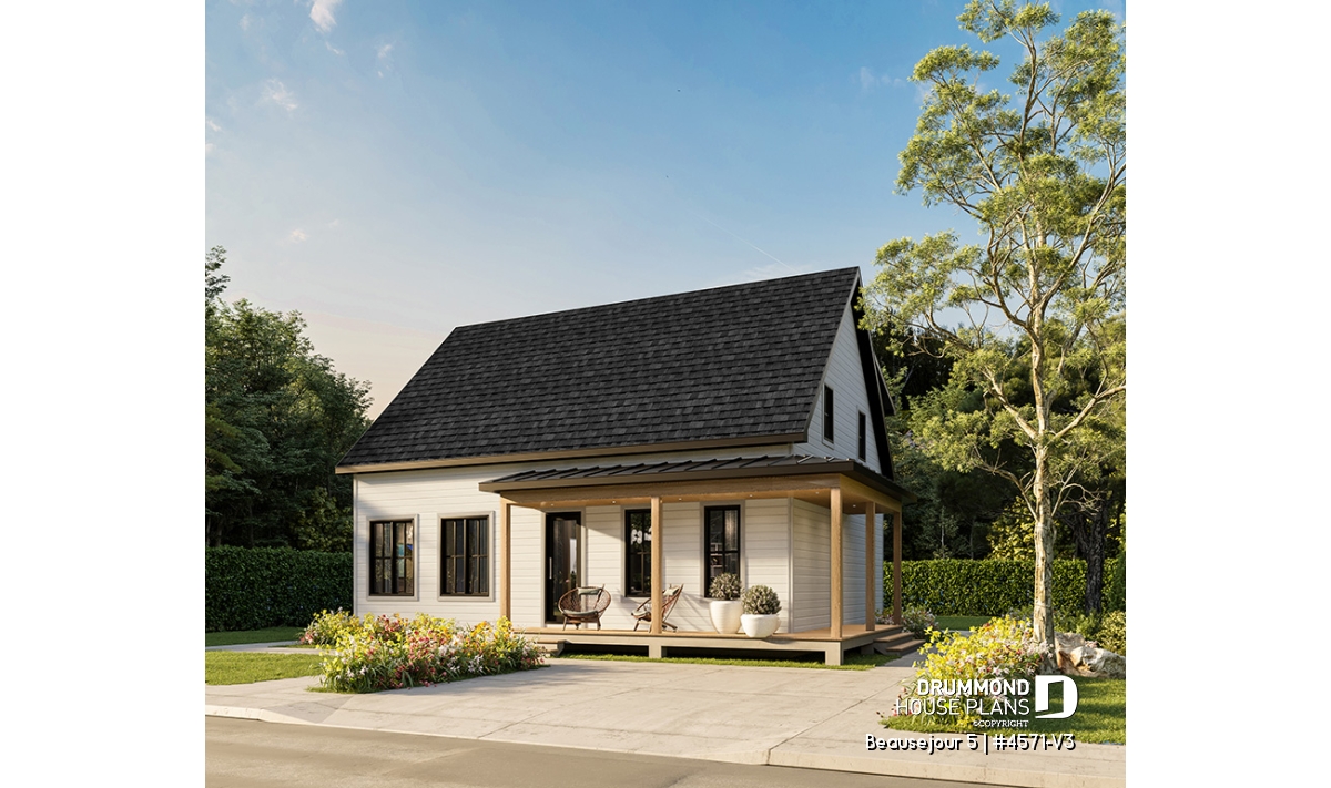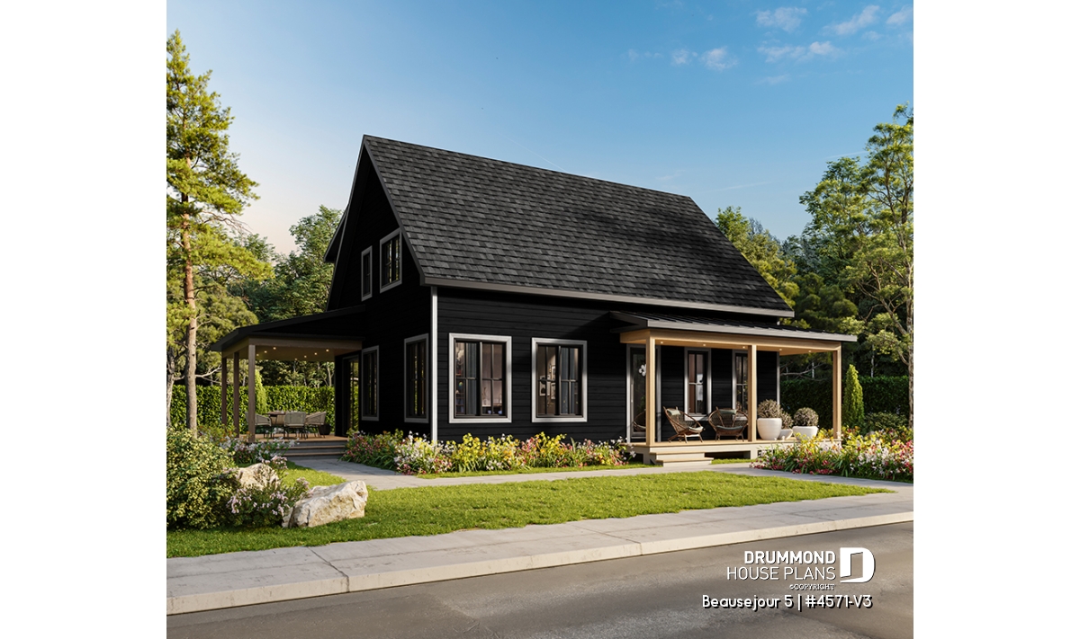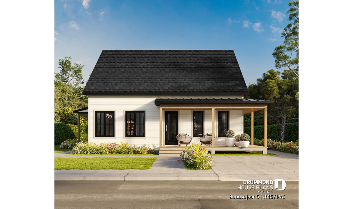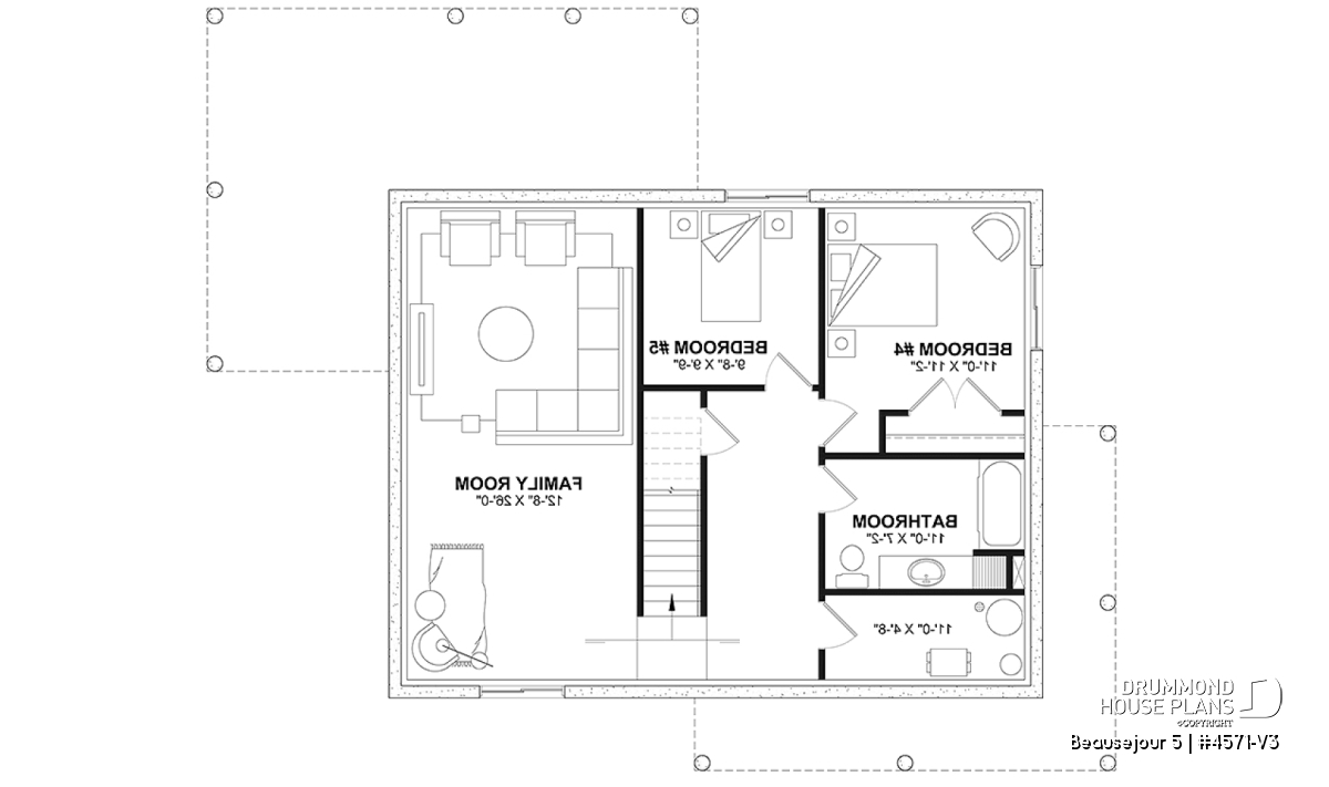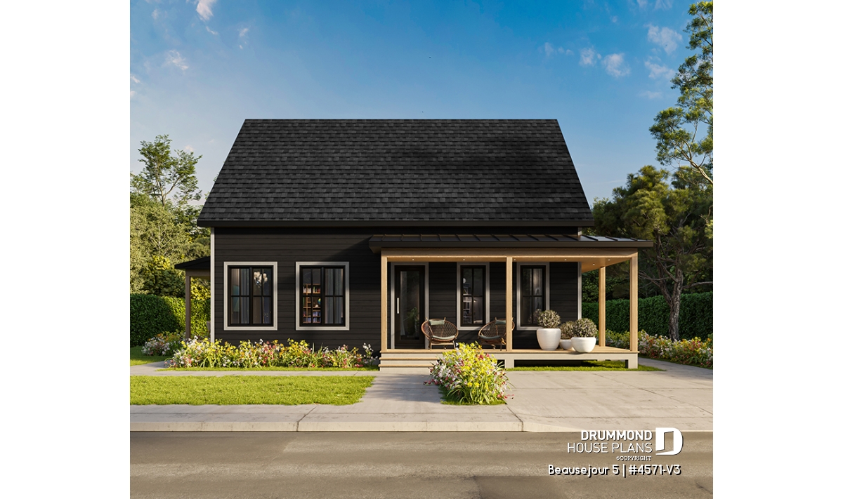 The BEAUSEJOUR 5 house plan (# 4571-V3) offers 2826 square feet on 3 floors. It should be noted that all the ceilings on the ground floor are 9 'high and that there are sloping ceilings in the master bedroom and also in bedroom # 2.