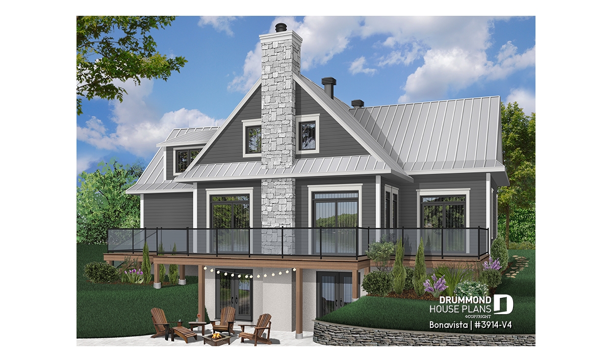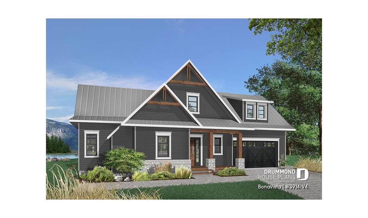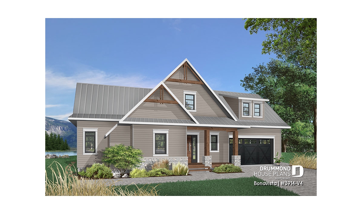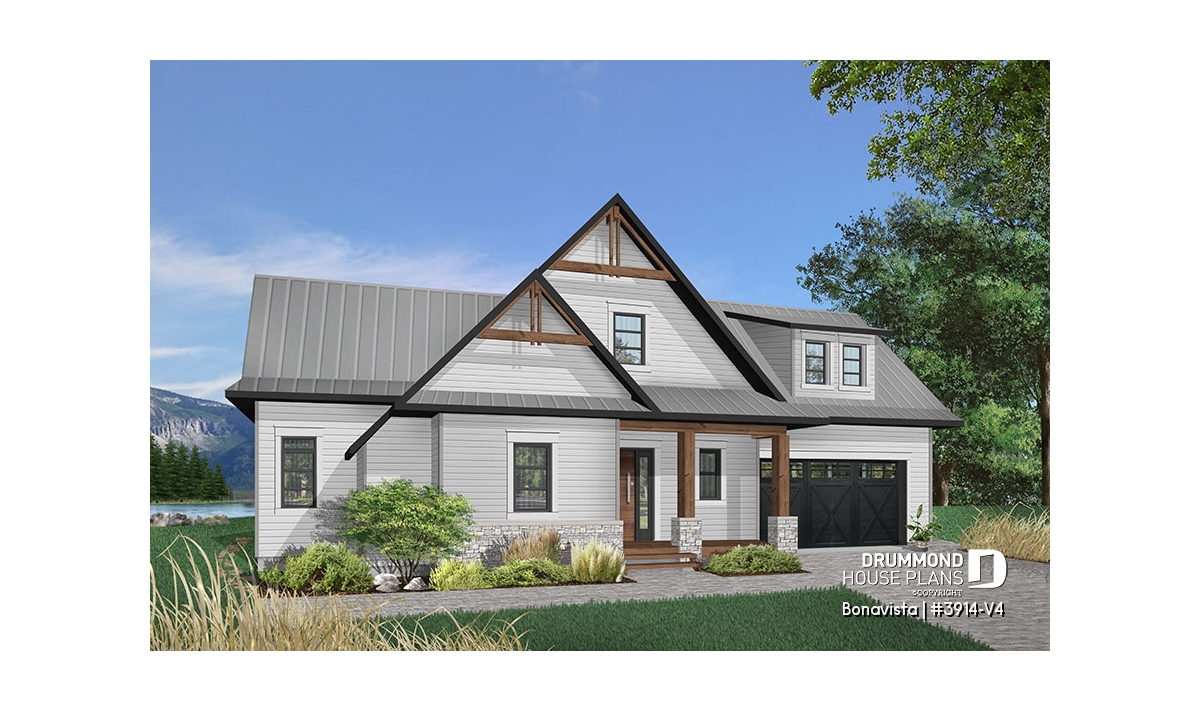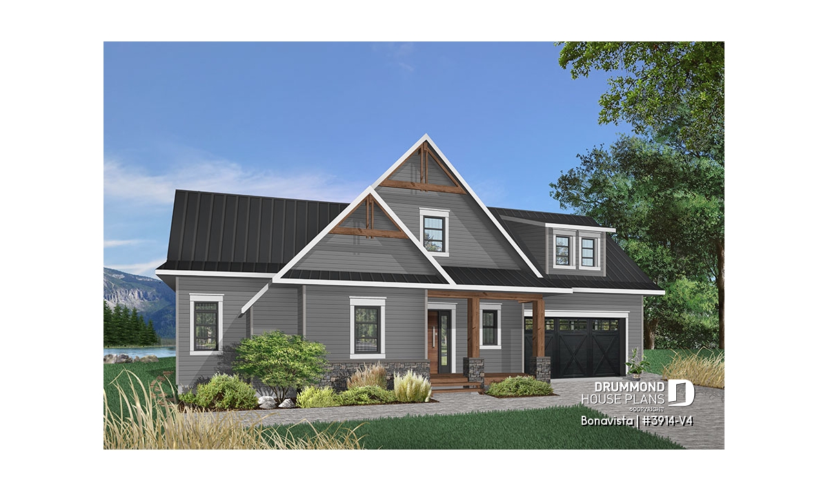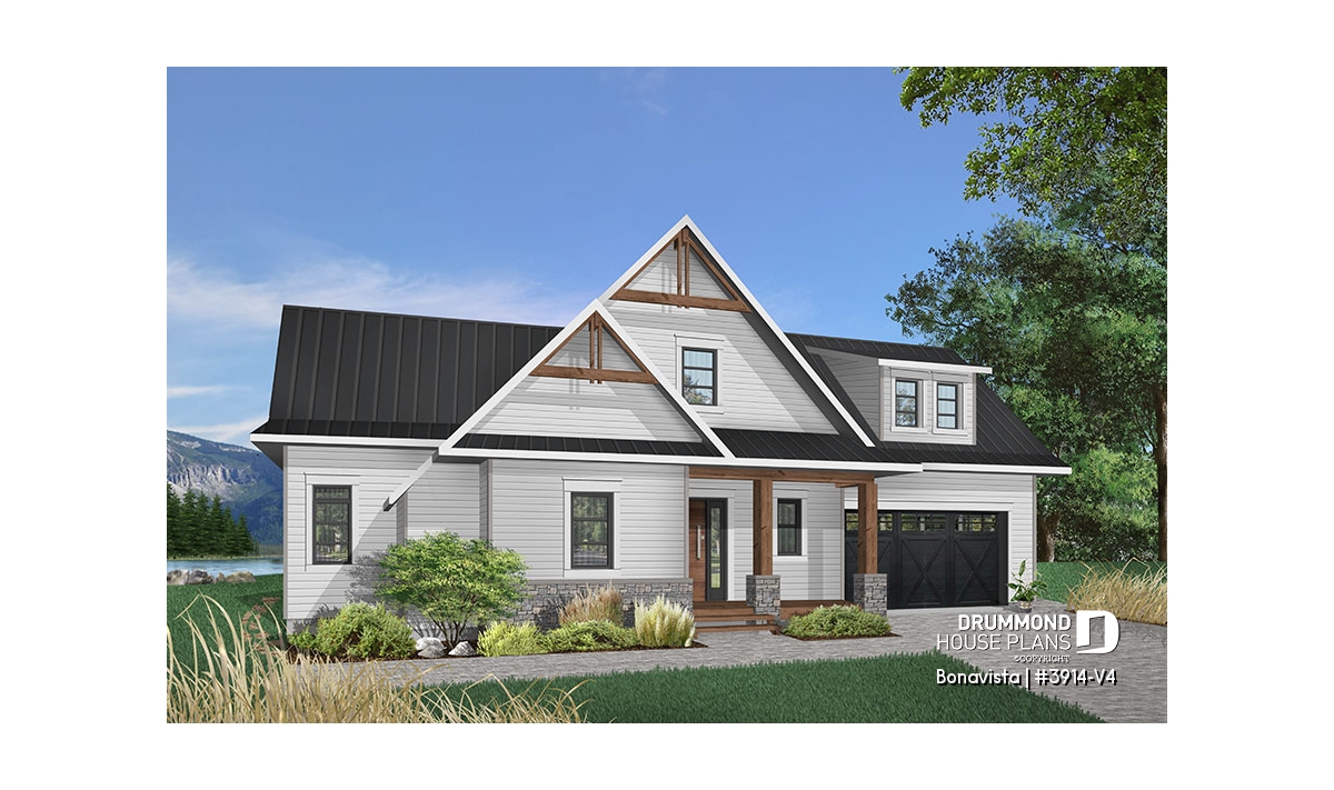 This member of our collection is much appreciated by owners of a lakefront or waterfront lot and it boasts the addition of a two car garage. Because of the several rooms which offer a view of the scenery, this plan is especially well suited to this kind of scenery.