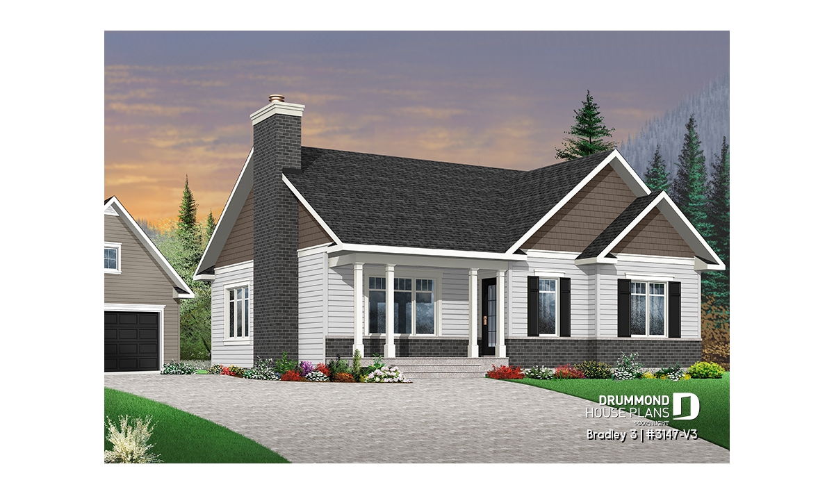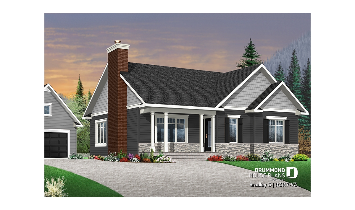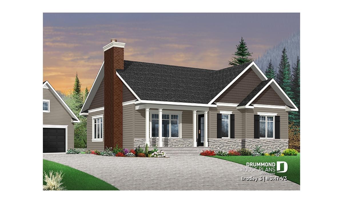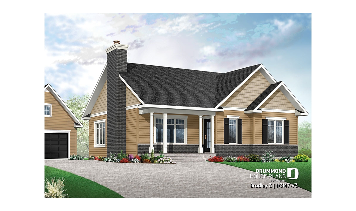 Inspired by plan 3147-V2, Bradley 2 has a larger floor plan with an extra bedroom and a second full bathroom.