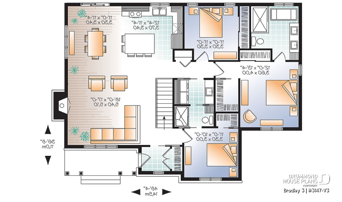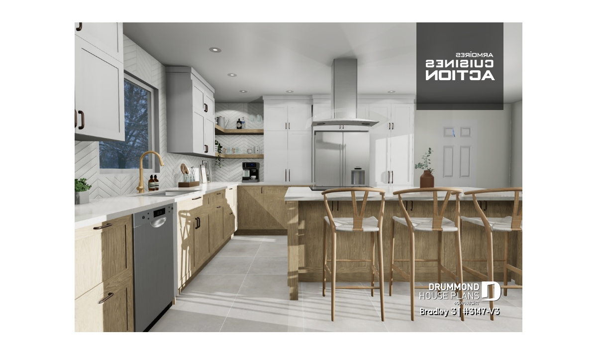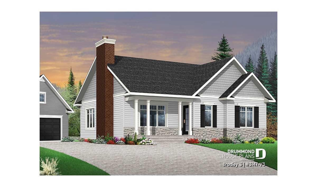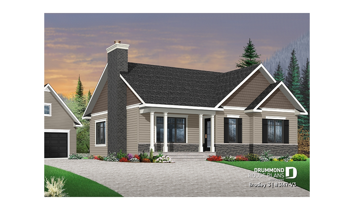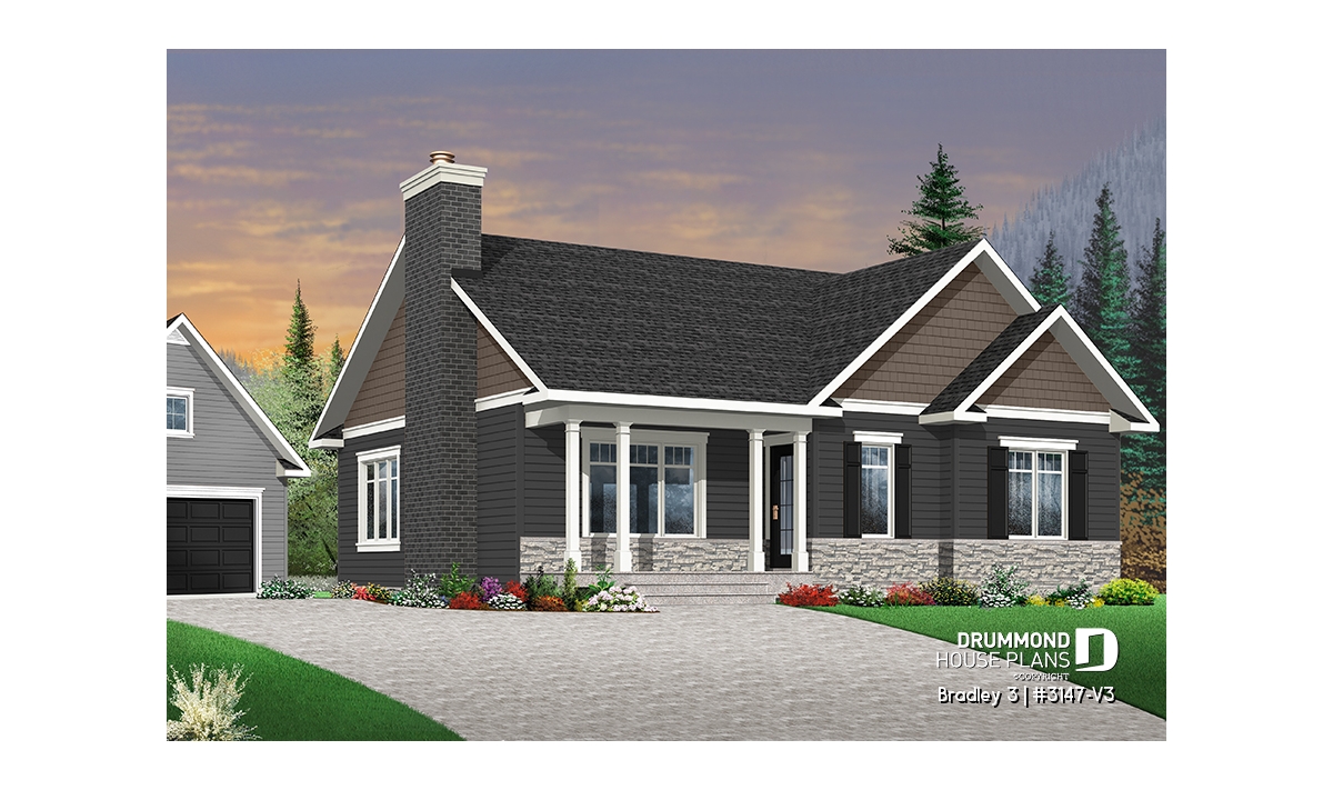 Inspired by plan 3147-V2, Bradley 2 has a larger floor plan with an extra bedroom and a second full bathroom.