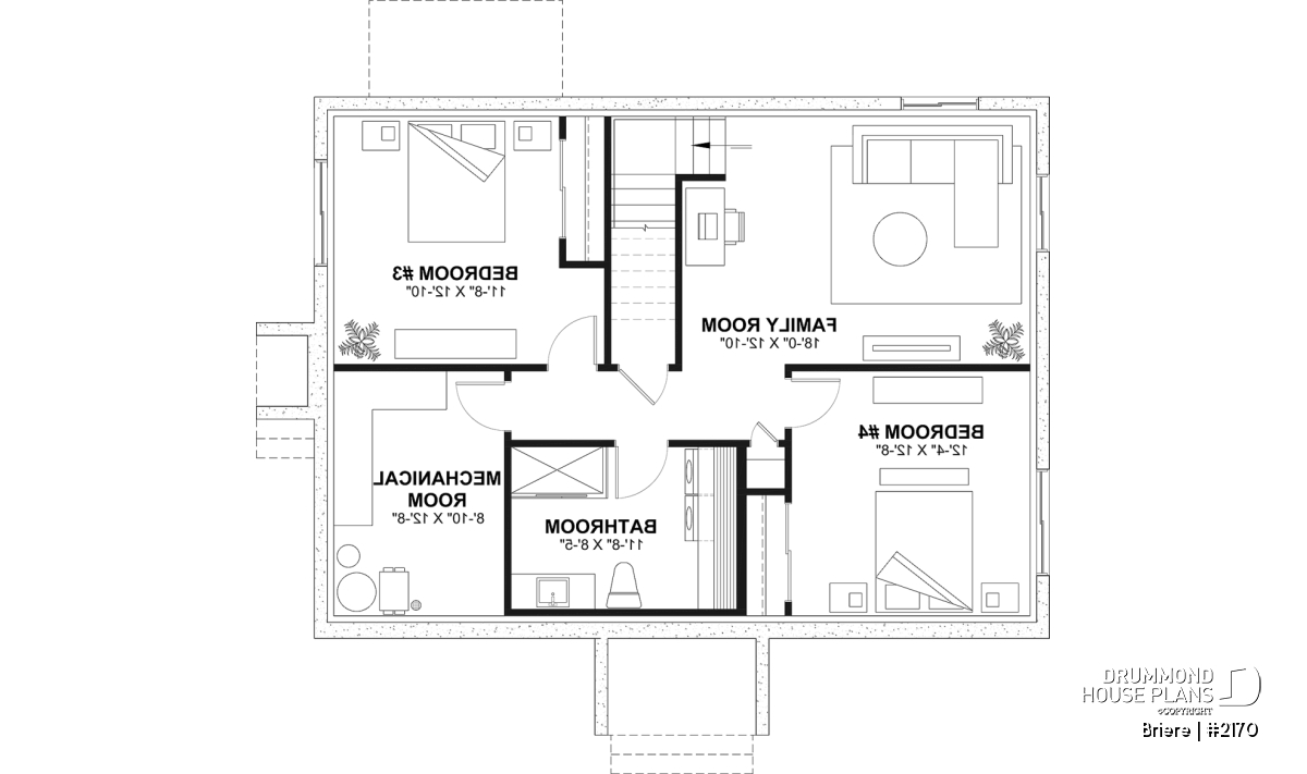 Adds 2 additional bedrooms, a bathroom, a laundry room, a family room, a mechanical room, and a storage area.
