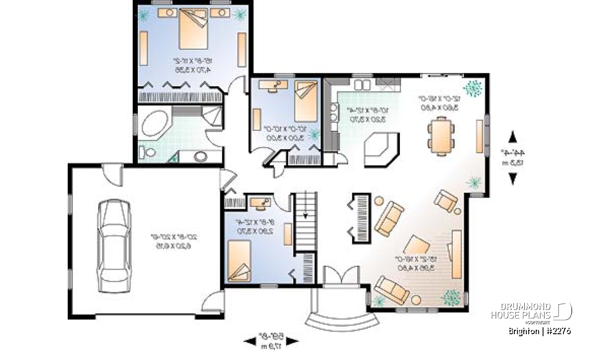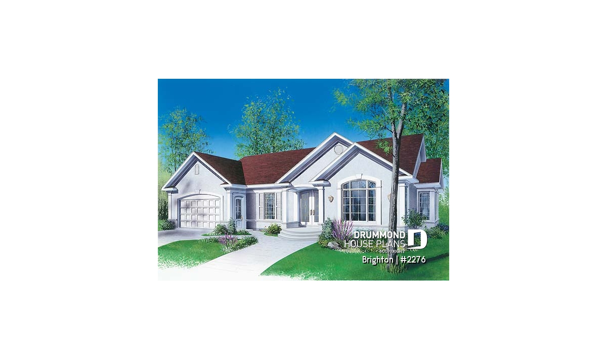 A trio of gables and generous windows create a charming facade on this narrow bungalow. An attached one-car garage provides sheltered transition from car to home. Guests will appreciate the covered entry and the openness of the interior. A forward-facing living room enjoys a generous window and the area transitions to the dining area with its own lovely bay window. A bright kitchen boast generous storage, an eating peninsula, and patio doors to the back yard.