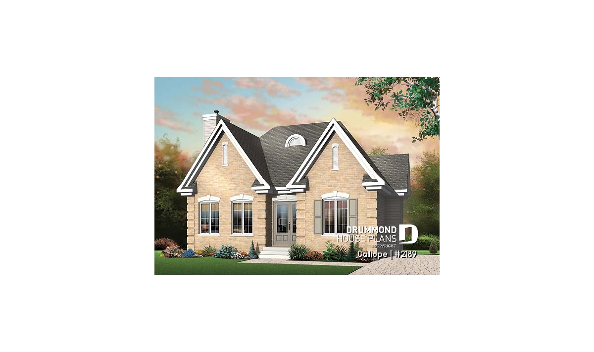 affordable one-storey home, ideal starter house plan, 2 bedrooms, lots of natural light, fireplace
