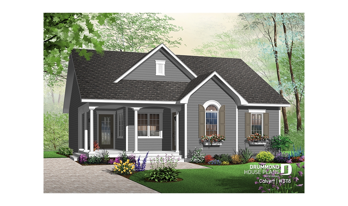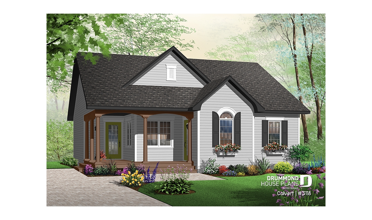 Affordable 2 bedroom bungalow with kitchen island, great open floor plan and affordable construction costs
