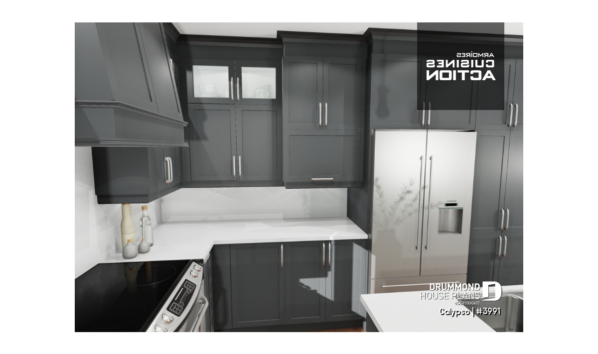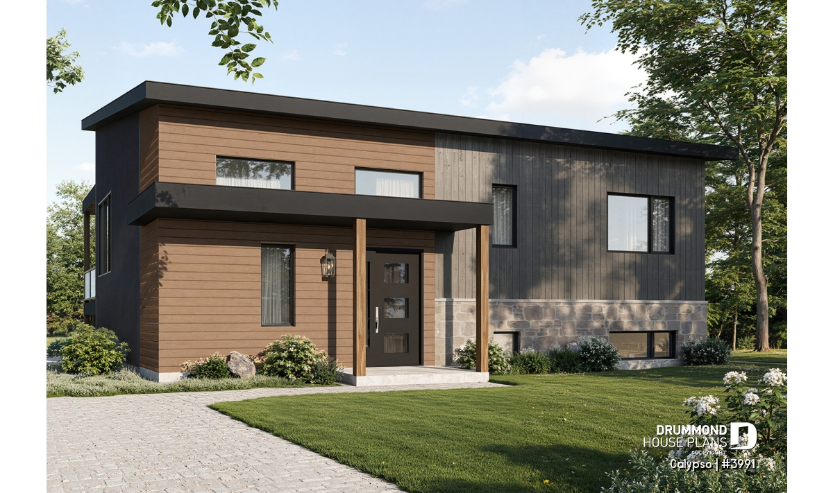 The following modern contemporary style chalet plan, CALYPSO (3991) will satisfy any nature lover. With its two levels, the ground floor and the basement witch is a garden level, this chalet will allow you to have a panoramic view of the landscape.
