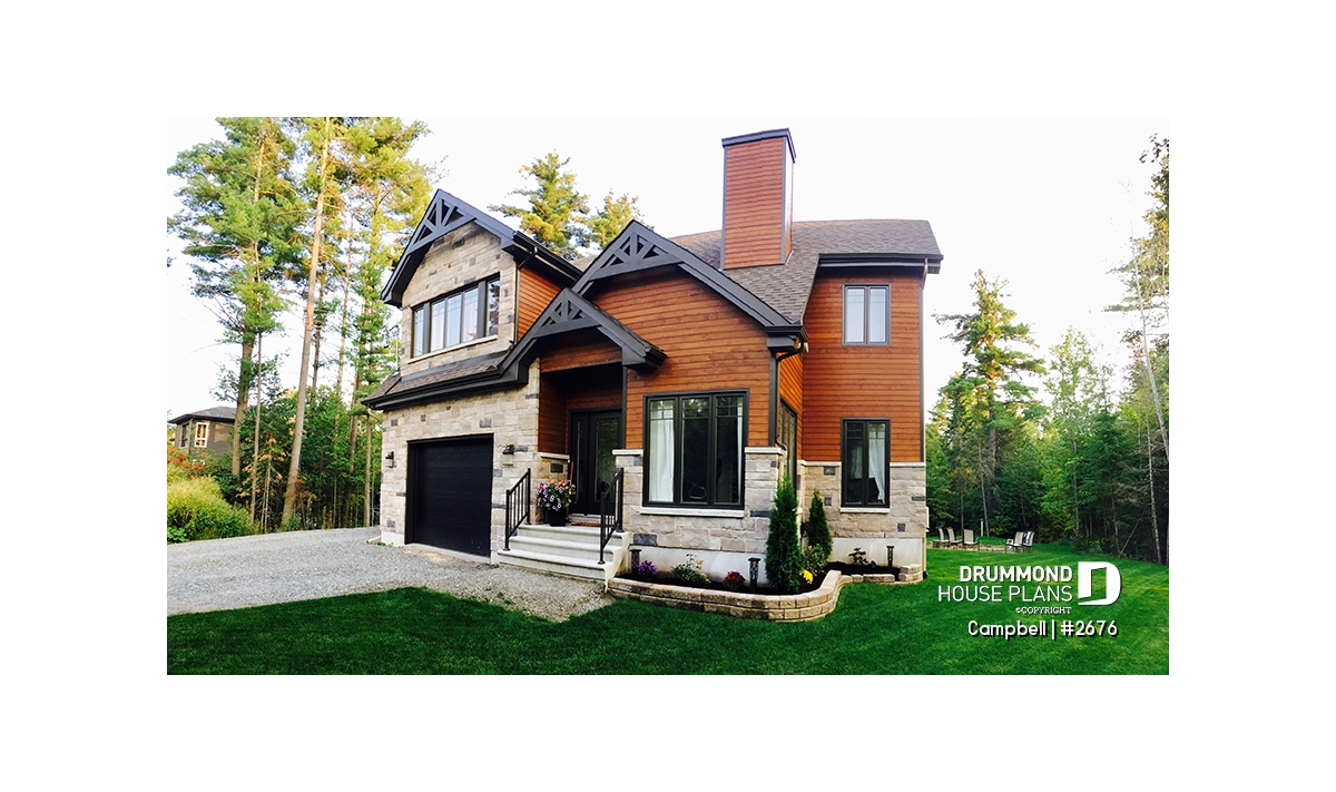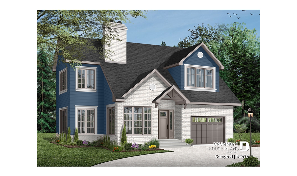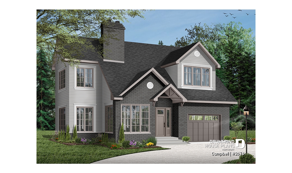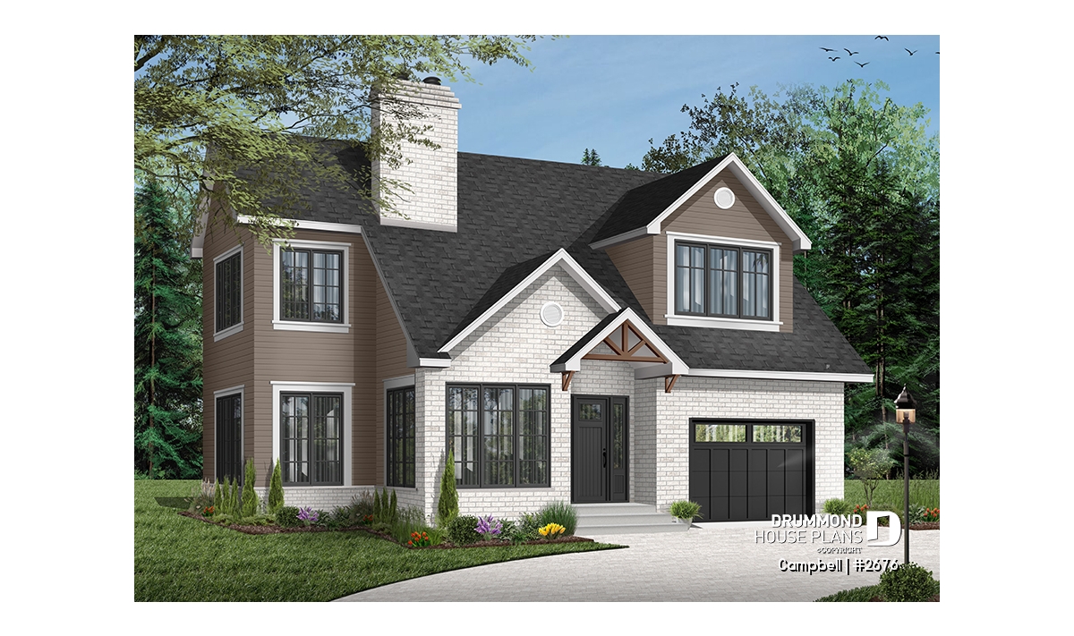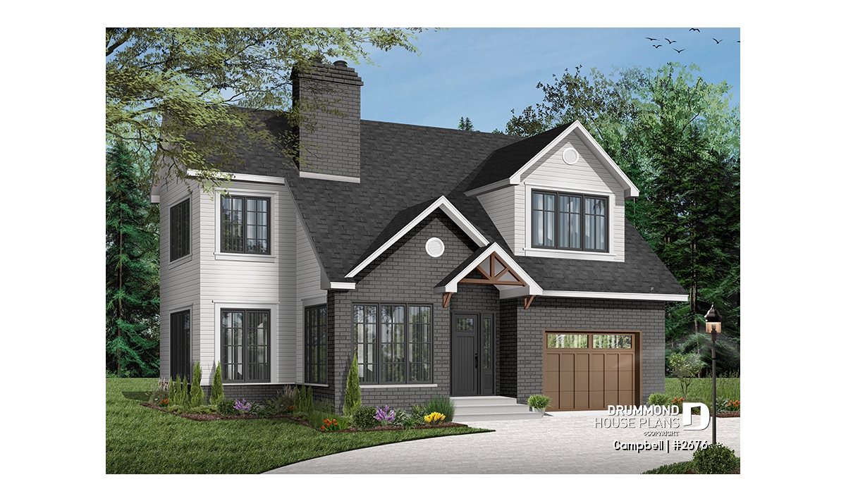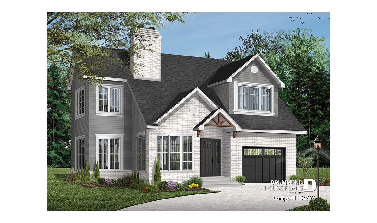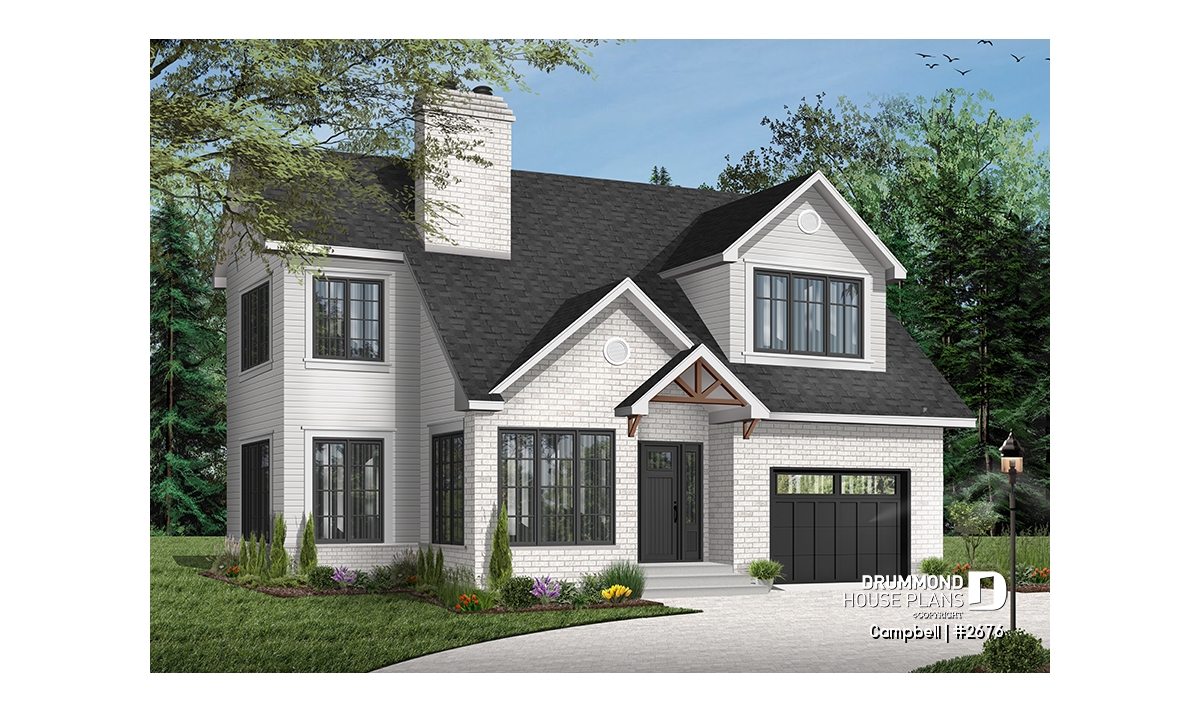 The unfinished basement provides valuable flexibility, allowing homeowners to adapt the space over time for additional living areas, bedrooms, or storage. Completing the design is a single-car garage with direct access near the kitchen, simplifying daily routines and enhancing usability. With its smart layout, modern styling, and adaptability, the CAMPBELL (#2676) is an excellent solution for homeowners seeking a stylish and efficient house plan tailored to narrow lots.