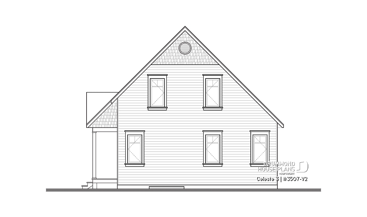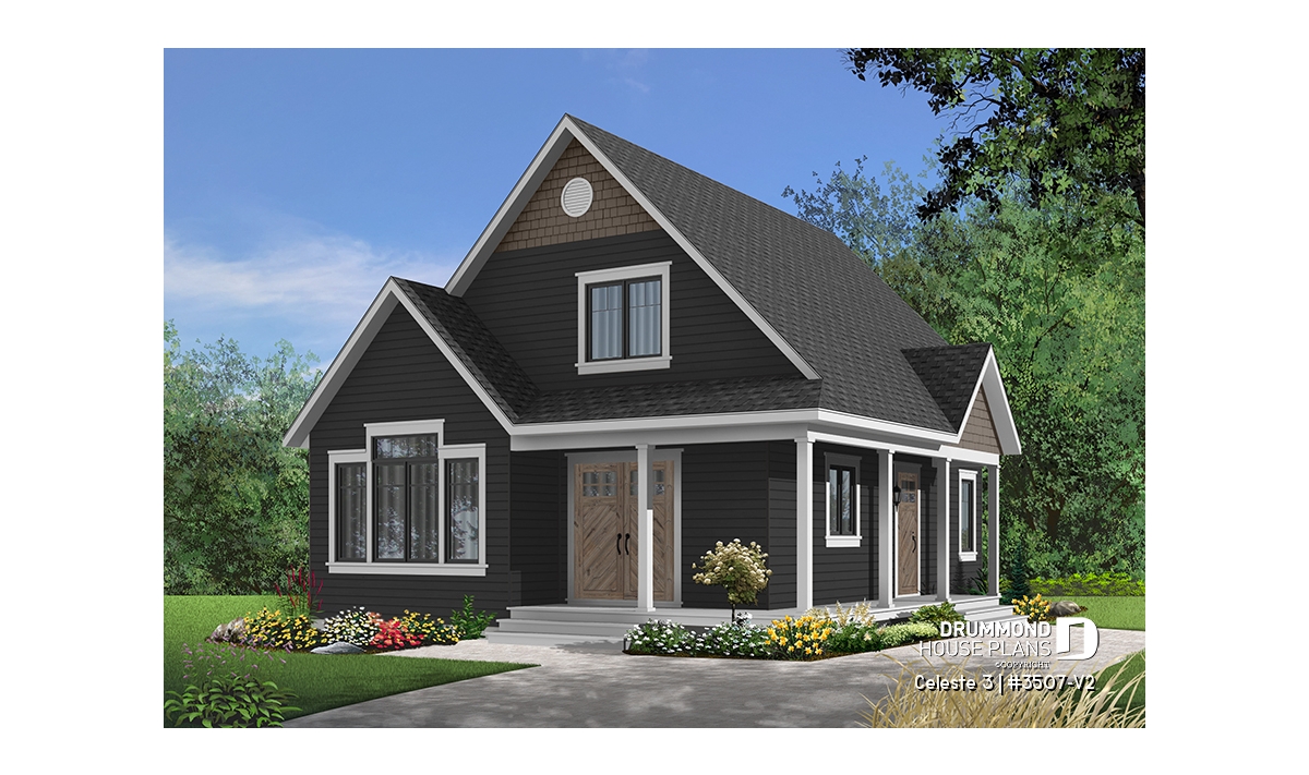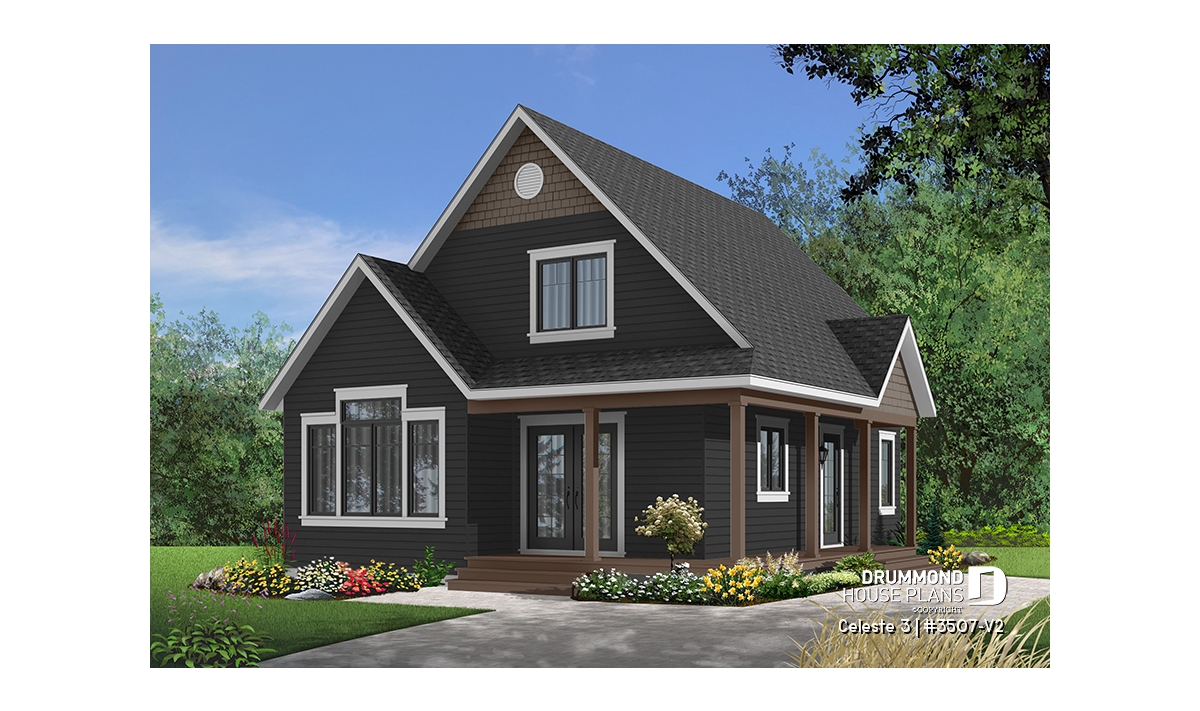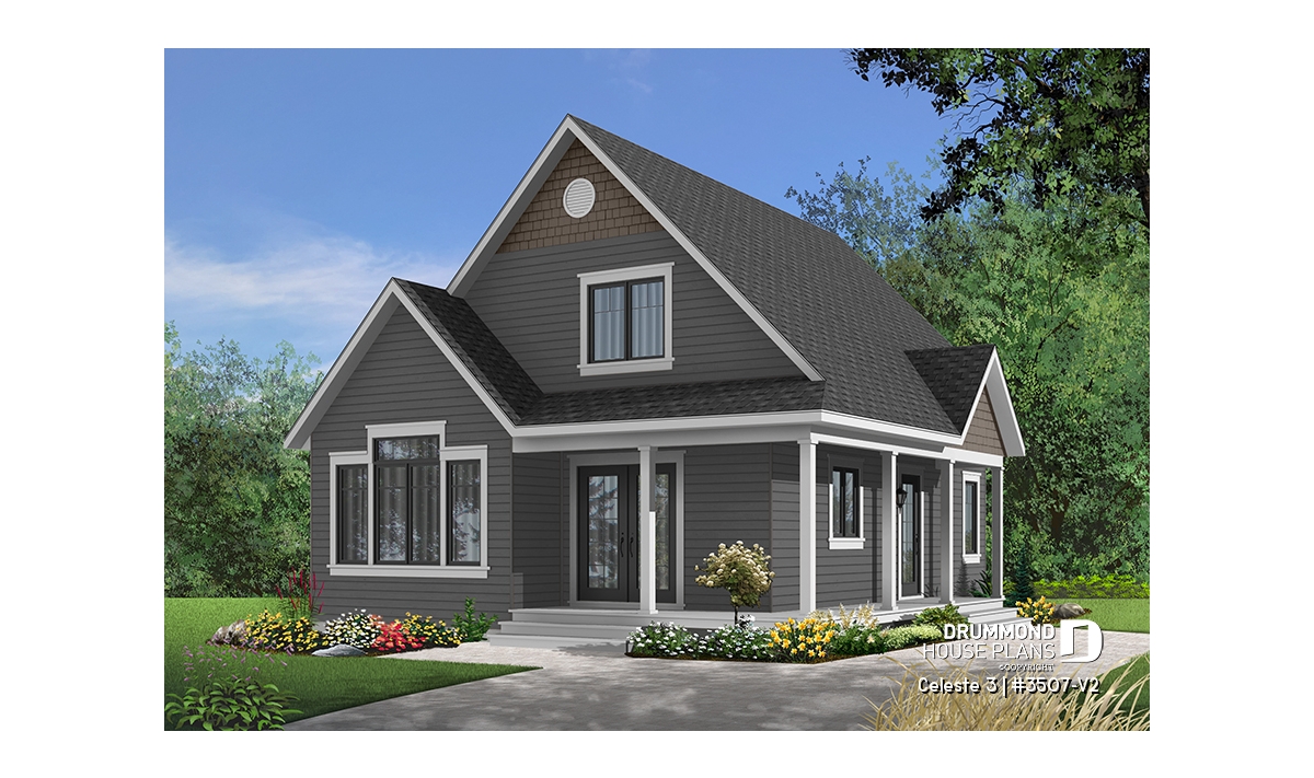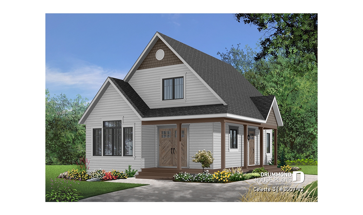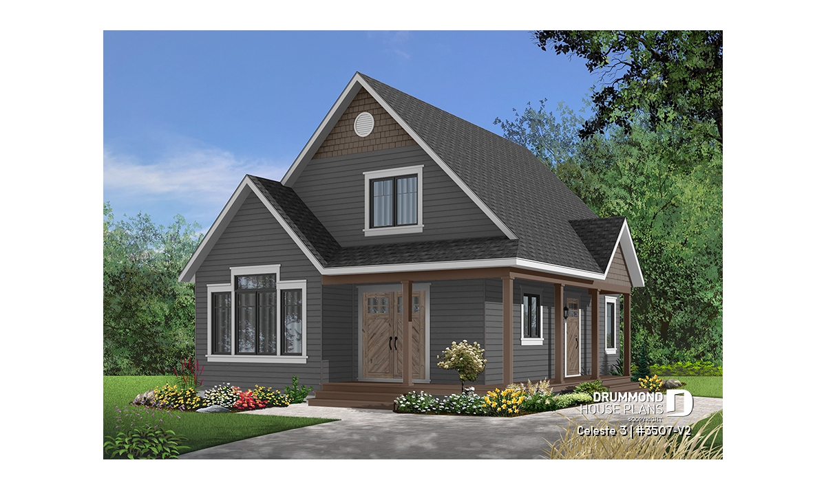 Inspired by the very popular 3507 cottage, plan 3507-V2 offers a more comfortable first level by increasing its depth by two feet. The progressive design offers a floor plan that can grow as your needs change because the living space upstairs can accommodate bedrooms or be left unfinished according to the owner's needs.