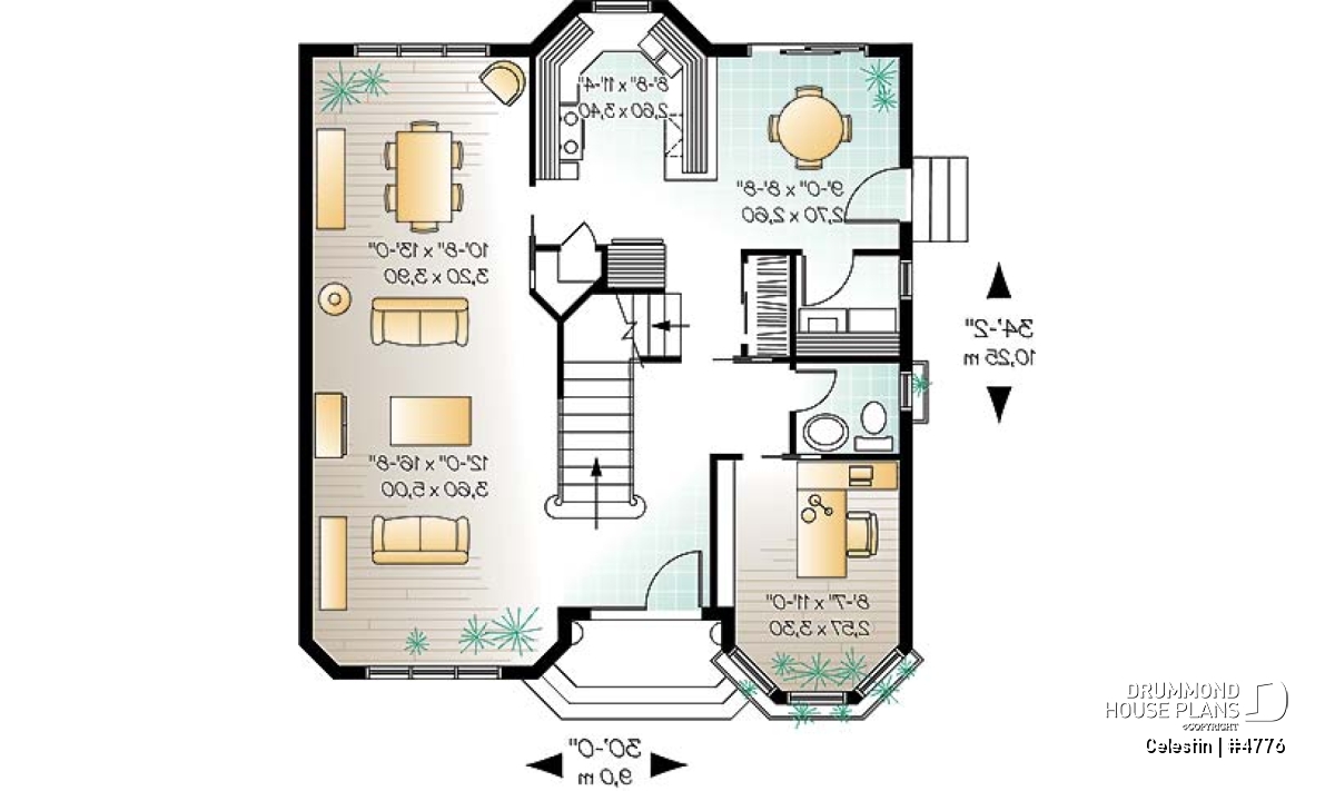 Equipped with balanced volumes and a more than remarkable fenestration on the main façade, this cottage plan no. 4776 from Drummond House Plans, also called Celestin, charm us as soon as it appears to our eyes. The raised color, suggested by the acrylic coating on the walls, is certainly not foreign to this immediate effect. Let us therefore see if the interior wants to be as catchy.