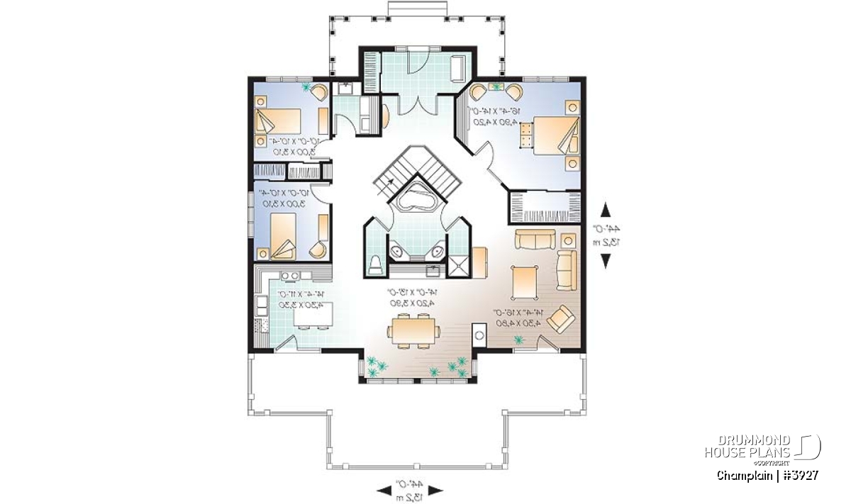 Covered balcony at front and remarquable terrace at rear. 9 Foot ceiling on main level. Fireplace shared between family and dining rooms. Kitchen with central island / lunch counter. Built-in modular bar in dining room. Original bathroom with private shower and toilet.
