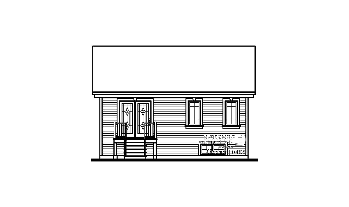 Cascading gables and a covered entry grace the front of this economical two-bedroom house plan.