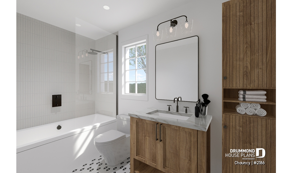 Bathroom accessible from the parents' bedroom as well as from the corridor.