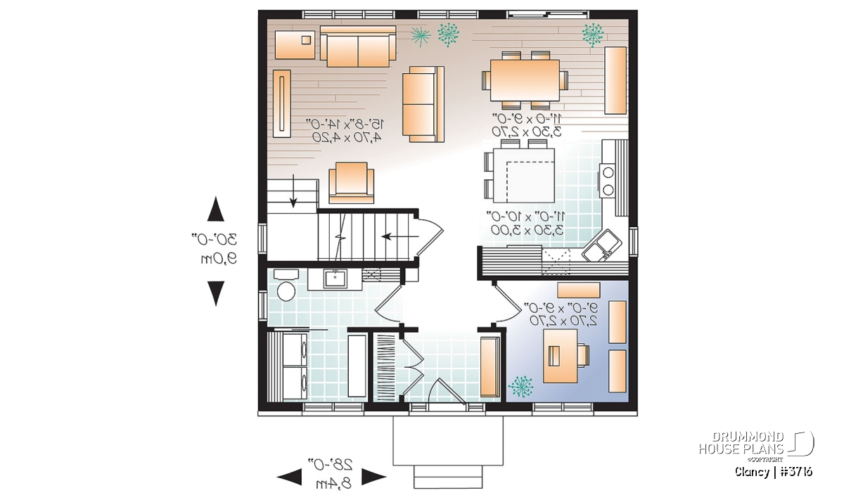 As a result of a survey done on our web site putting three different floor plans on display and from which we chose the preferred style to create plan 3716.