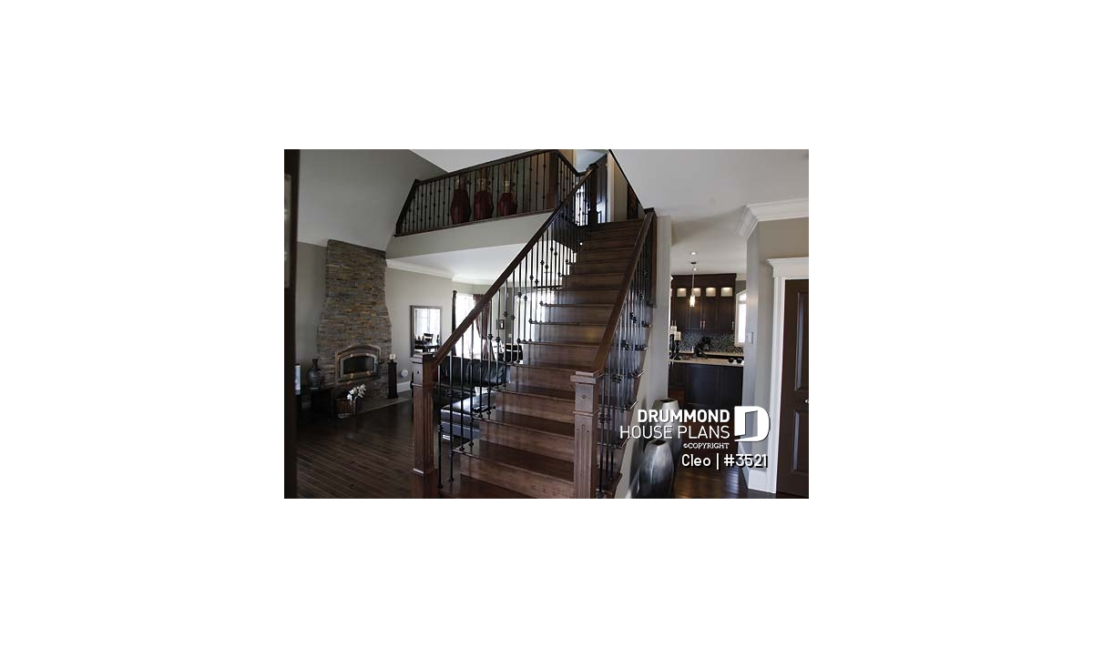 Pass through the main entrance and your eye travels up the staircase, wanders up the cathedral ceiling or rests beyond the living room at a family hearth. To the right is a conveniently located small office or study.
