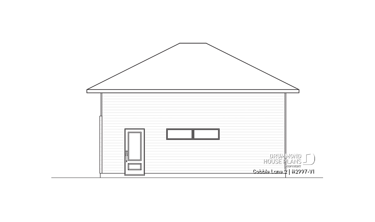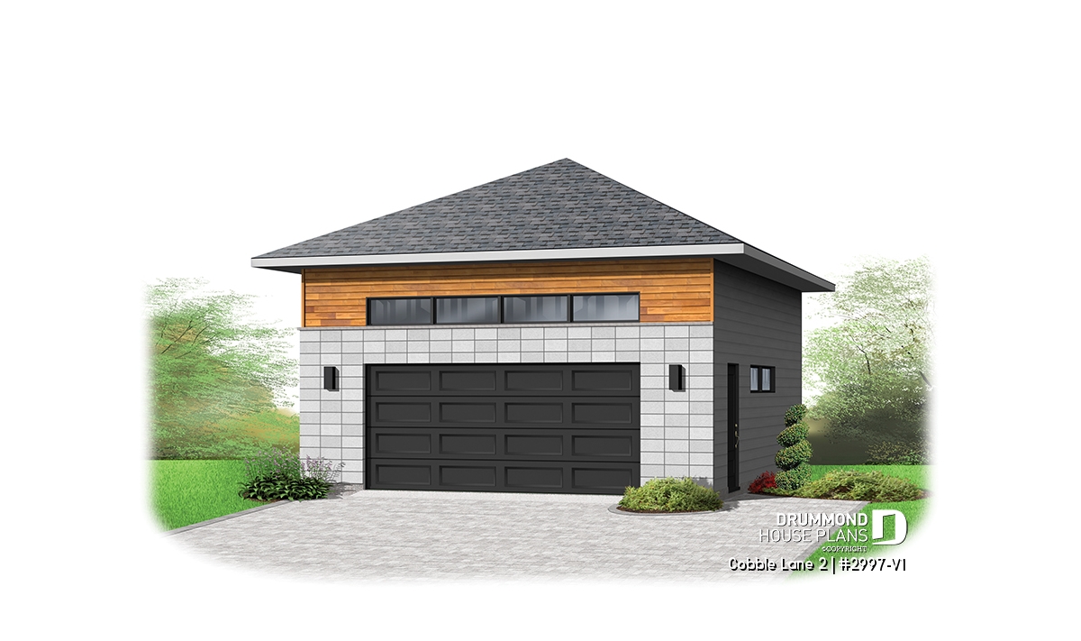 2-car garage plan, Contemporary/Zen with large window, and mezzanine for storage