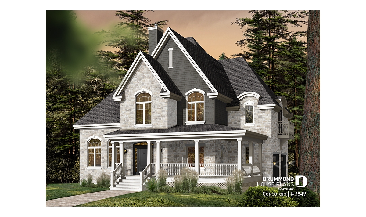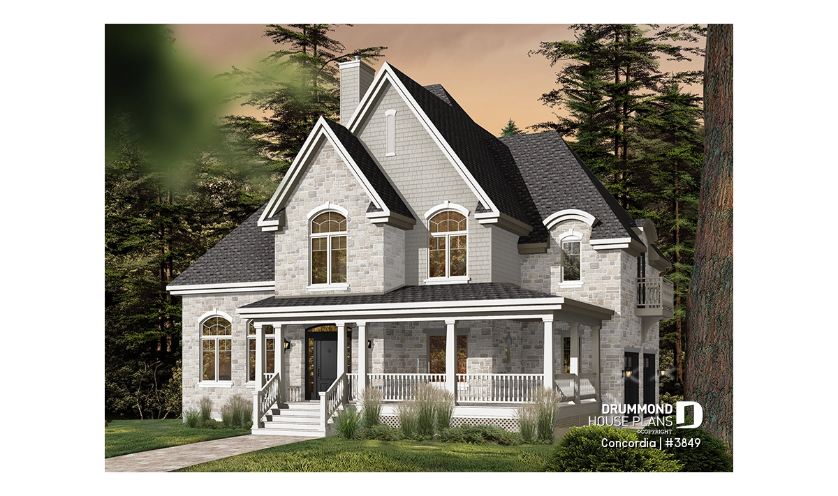 Its elegant lines and timeless looks will remain classic throughout the years. The brick/stone on the main facade and at the base blended with rough-cast coating on other facades along with the gables and dormers come together in a striking combination. The garage includes stairs to the basement and an attractive room upstairs with includes a dormer and abundant storage space despite its three way sloping roof.