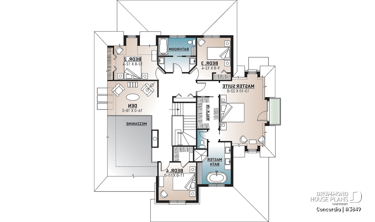 Fireplace, Mezzanine, Gound floor laundry room, Office / Study / Den, Side entry garage, Island, Ceiling over 8', Cathedral ceiling, Master suite upstairs, Covered patios, Breakfast nook, Entrance hall, Warparound, Formal dining room, Walk-in master bed., Sitting area, Library, Separate bath and shower, Double sinks, Sloped ceiling