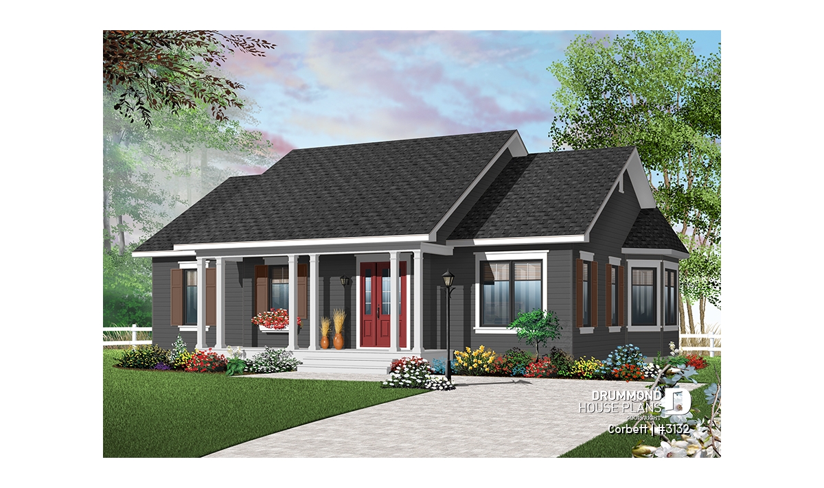 Additional space is available by developing the basement or choosing a crawlspace foundation to increase the size of the living room.