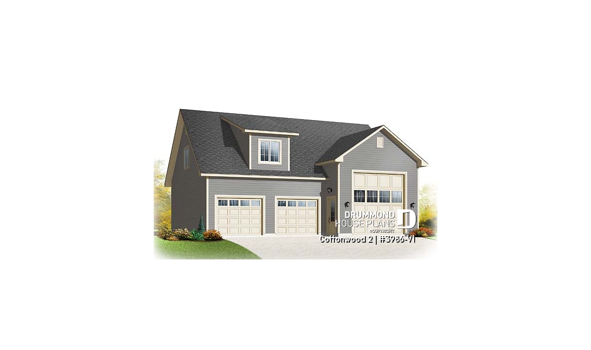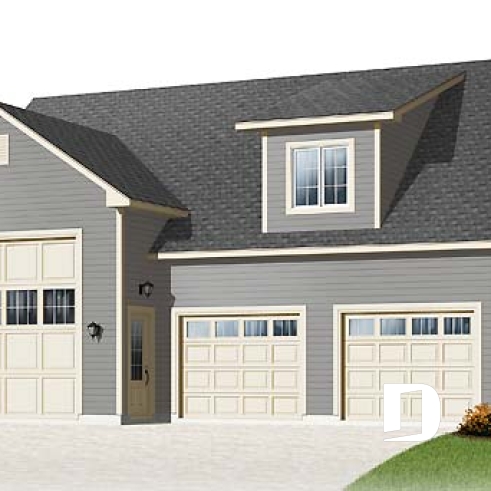 Two deep auto bays plus an RV or truck bay will keep your favourite vehicles safe and dry. This RV garage plan features 1527 square feet on the main level and 627 square feet of bonus space above.