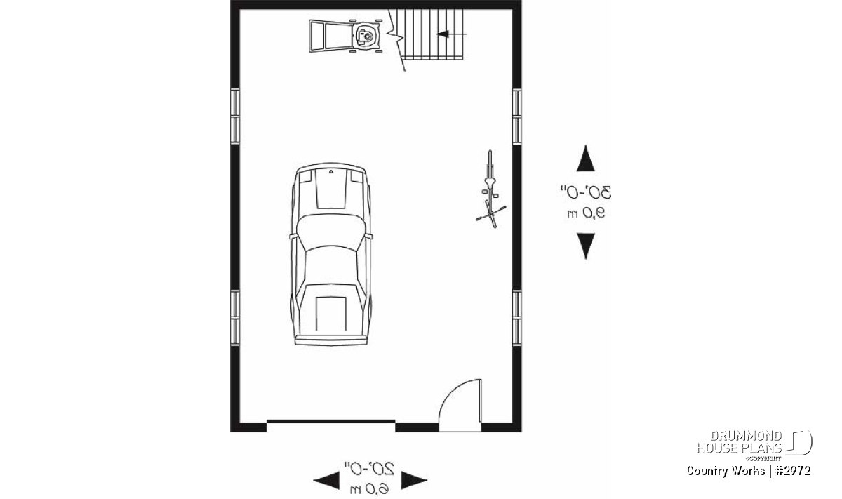 1-car garage plan + workshop space on main floor.