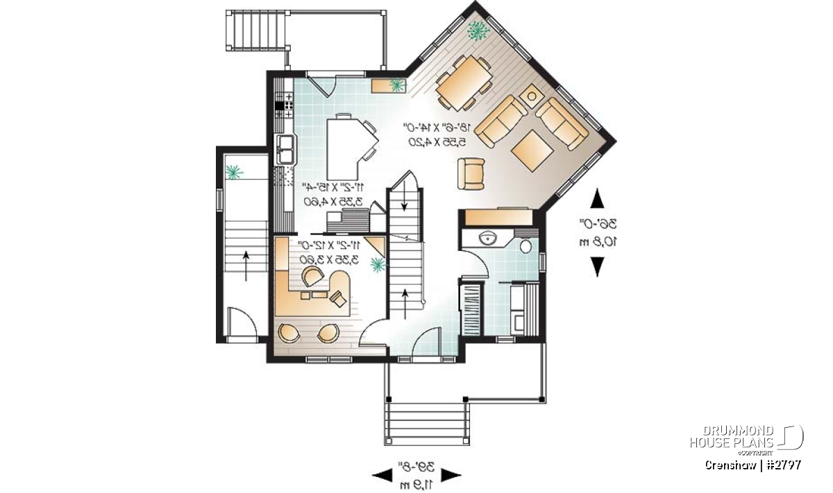 Open floor layout, Access to basement from exterior, Gound floor laundry room, Island, Walk-in master bed., Office / Study / Den, Double sinks, Separate bath and shower