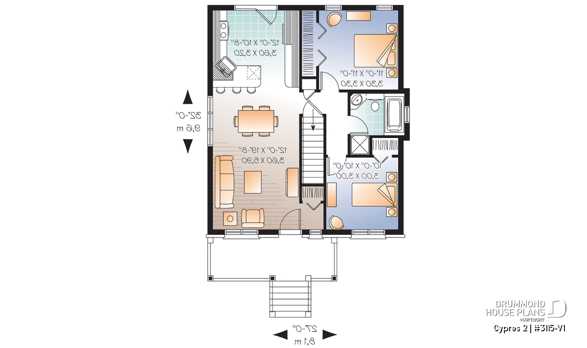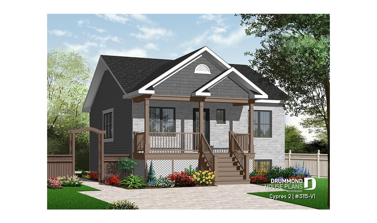 Nice front porch. Activity area entirely opened. Kitchen with adequate storage and double patio door to the back. Simplified construction home.