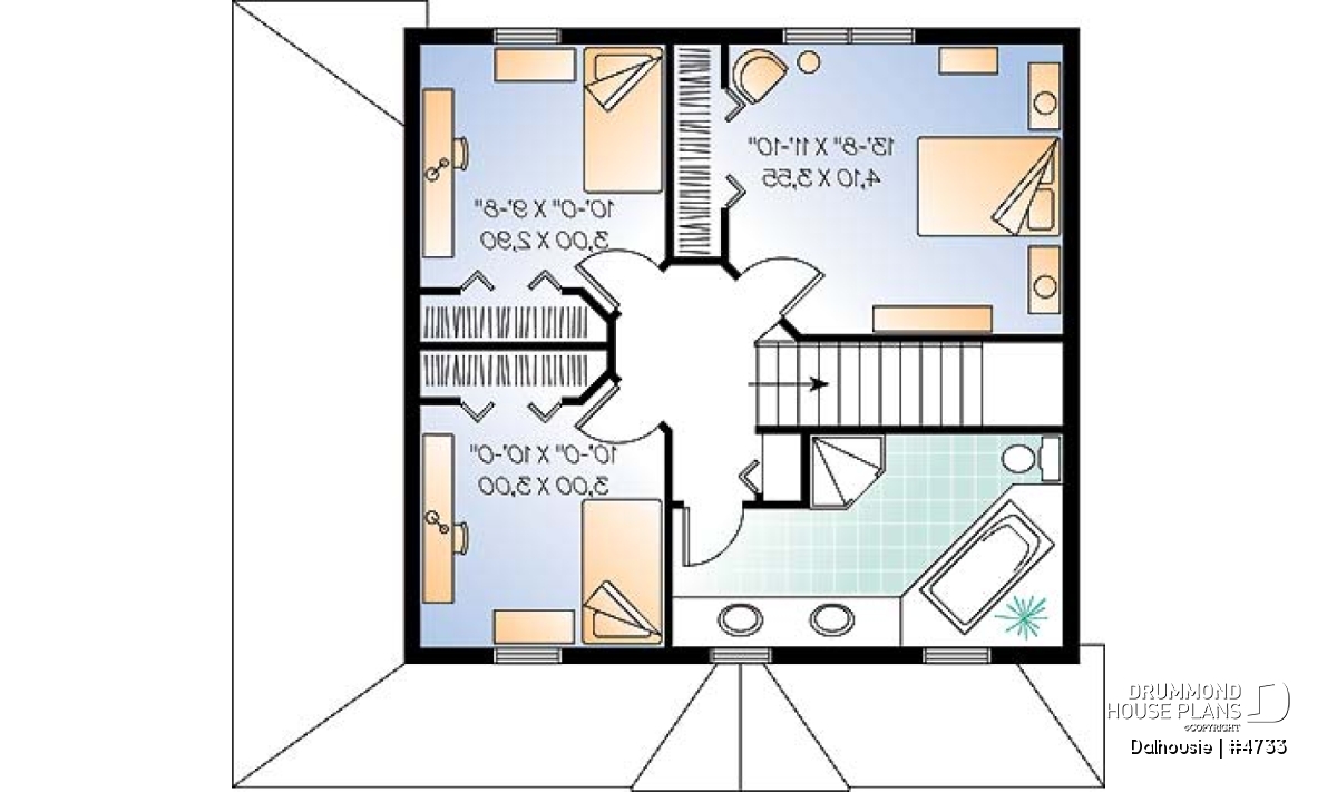 Wraparound covered porch at front and right, special fenestration, dormer, shutters, dual sinks in 2nd level bathroom.