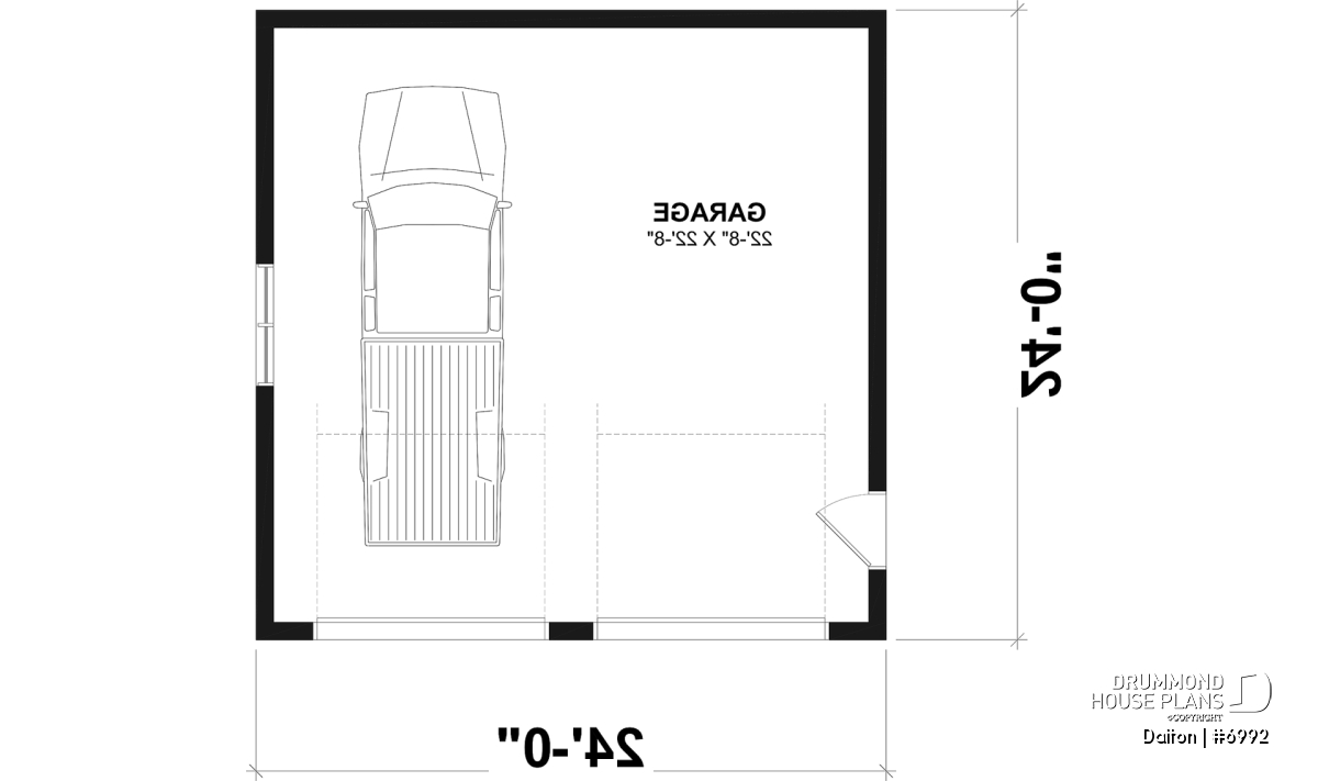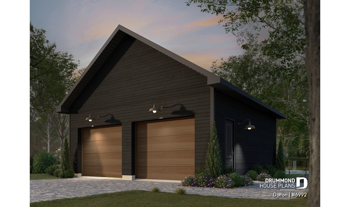 The DALTON garage plan (#6992) offers a very attractive exterior with its clean look that will suit many styles of homes. It provides an adequate space of 24' x 24' to comfortably accommodate 2 cars. The ceiling height is 9', the walls are insulated for more comfort and the standard foundation is a floating slab.