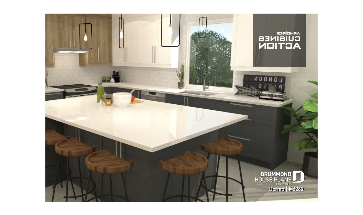 A proud new addition to the Drummond collection of contemporary designs, this sleek little single-storey easily fits in most higher density developments but without sacrificing style. A mere 36 ft. wide and 50 ft. deep with attached 20 ft. x 14. ft. garage and simple roofline allows more of your building budget to be devoted to interior spaces. The simple lines actually enhance the classic lines of this fine home.