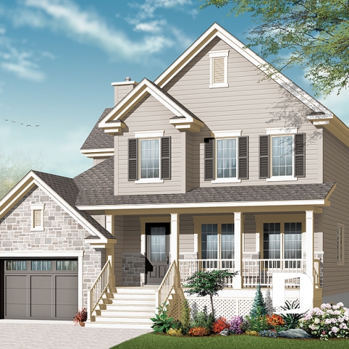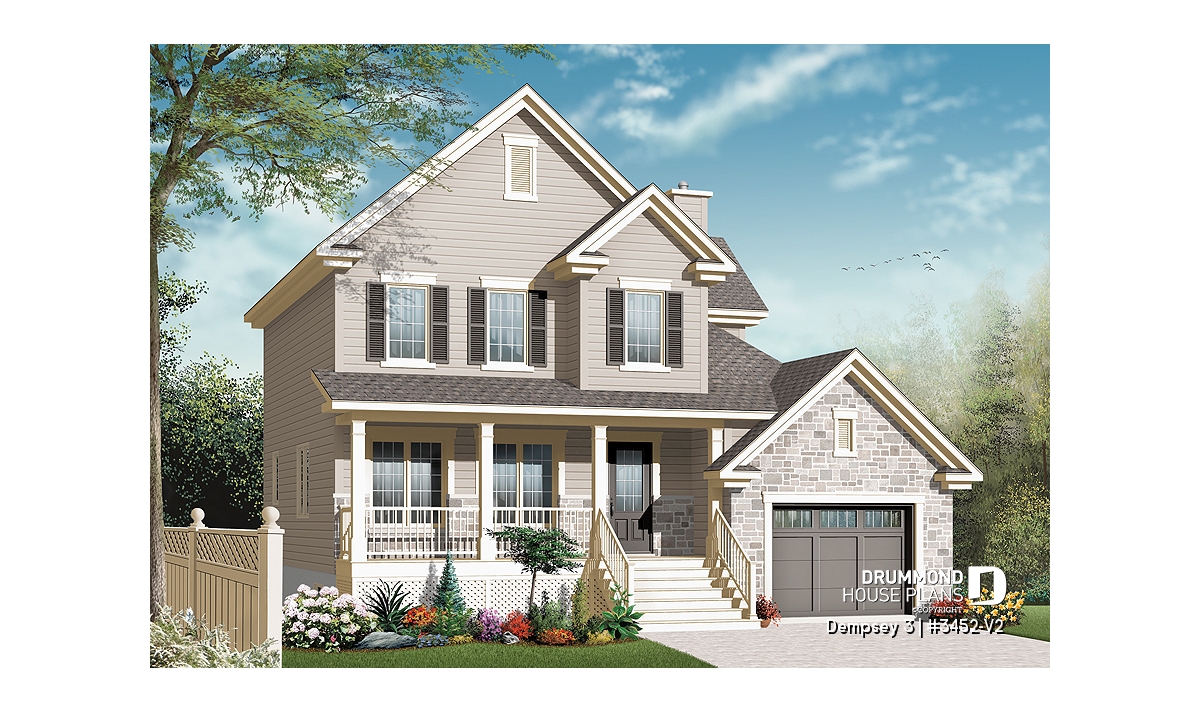 Large porch on the front and hall in main entrance. Nice kitchen with central lunch island. Home office and laundry area on the first level. Bonus space above the garage enhanced with a dormer. Large walk-in closet in master bedroom. Complete bathroom with a 40" x 50" shower.