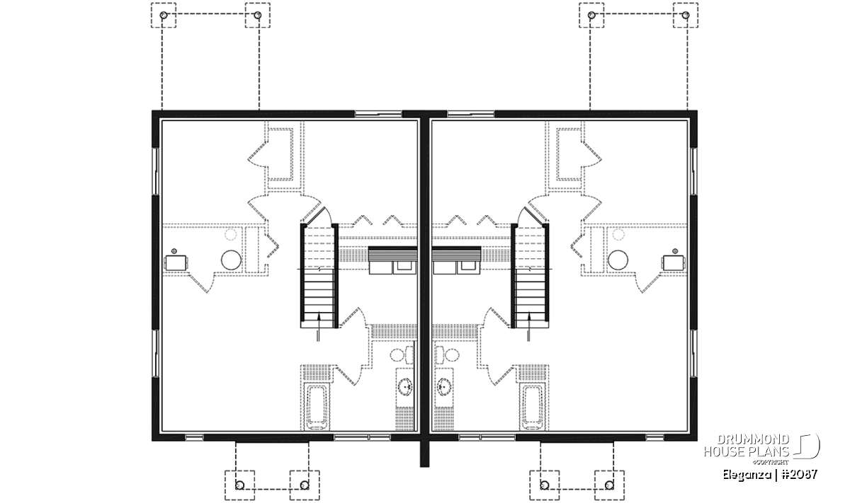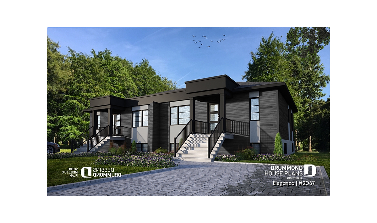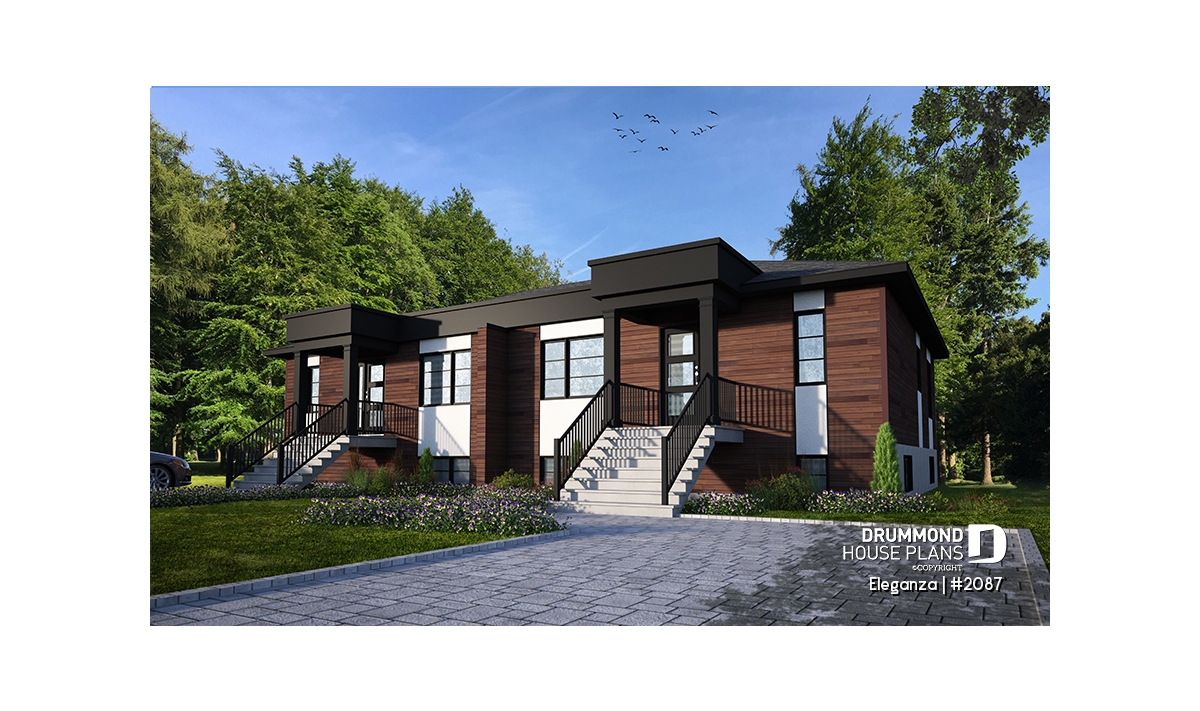 Modern duplex plan with 1 or 2 bedroom options included in the plan.