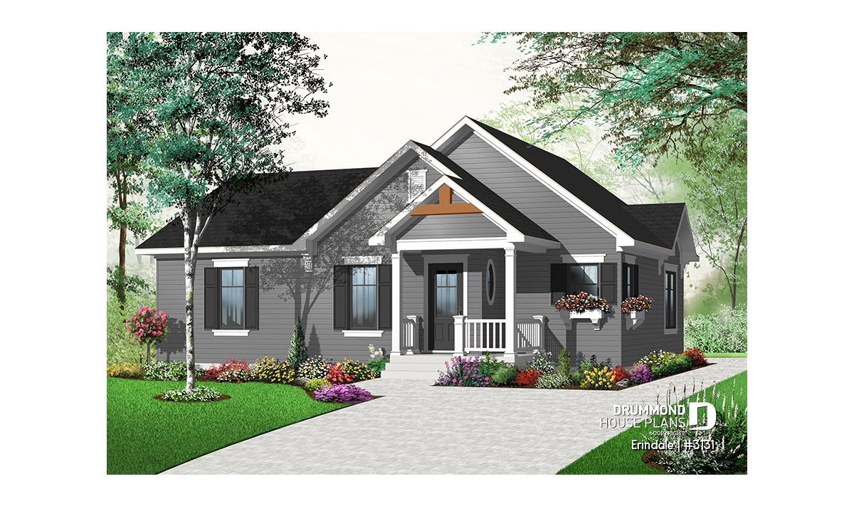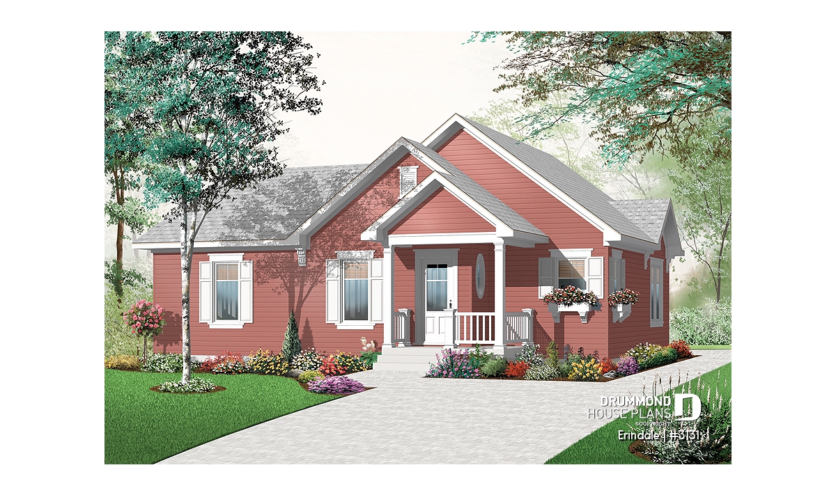 Cascading gables and lovely shuttered windows add charisma to this efficient cottage. Step in off the covered entry and you’ll enjoy the open concept floor plan. A generous island provides separation for the kitchen and space for light meals and visiting all at the same time.