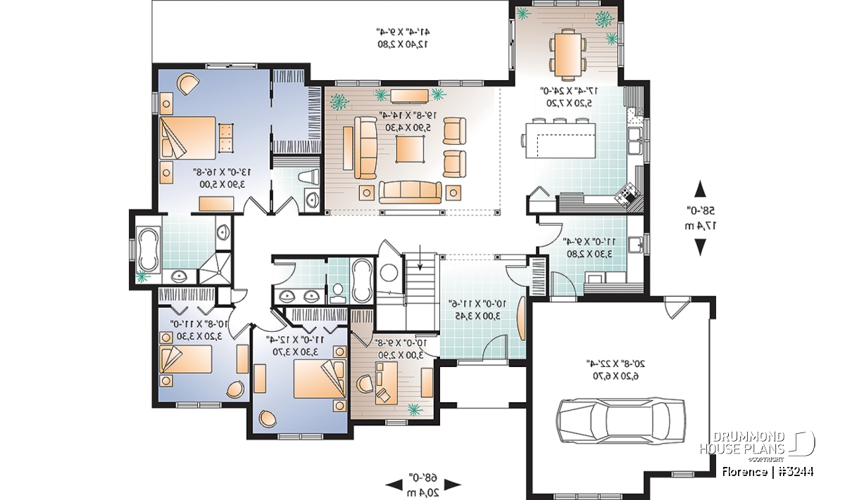 Mezzanine, Office / Study / Den, Lunch counter, Living bonus space, Ceiling over 8', Side entry garage, Island, Open floor layout, Master suite on main, Gound floor laundry room, Oversized garage, Separate bath and shower, Walk-in master bed.