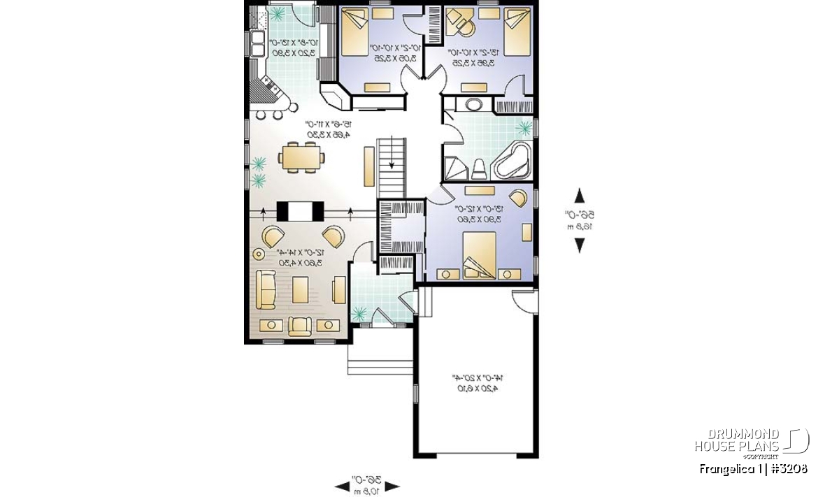 9 Ft ceiling, sunken foyer and living room, see-thru fireplace between family & dining rooms, corner bathtub, access to garage from foyer and service door on the left side.