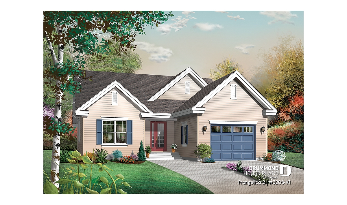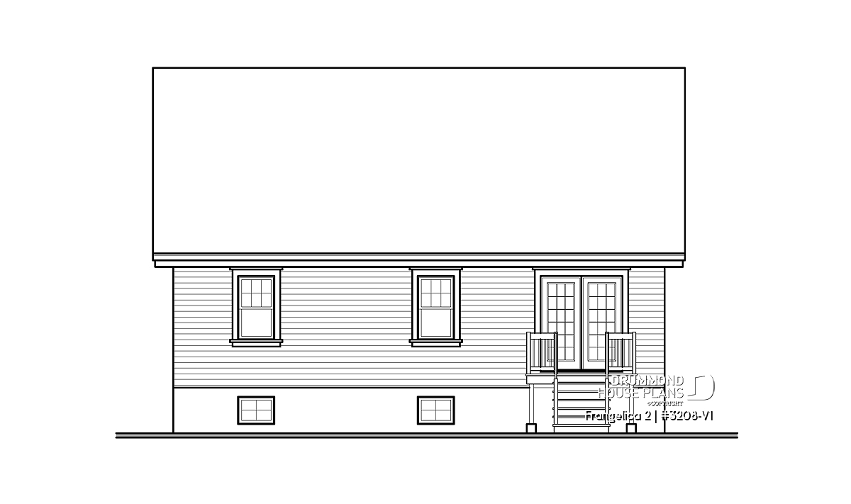 A trio of forward-facing gables adds volume to the front of this narrow bungalow. At just 36 feet wide, a clever use of space achieves a 3-bedroom floorplan in under 1436 sq. ft. without sacrificing comfort. A covered entry transitions to an enclosed foyer for the comfort of arrivals and residents alike. The living room is divided from the dining room by pocket doors, allowing a semi-open option. To the back of the house, an ever-popular galley kitchen enjoys backyard access by patio doors, plus an small peninsula for light meals.