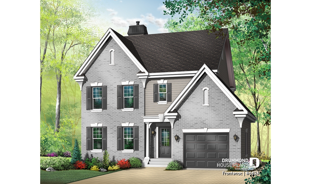 Affordable 2-story traditional house plan with garage, master suite and great family room.