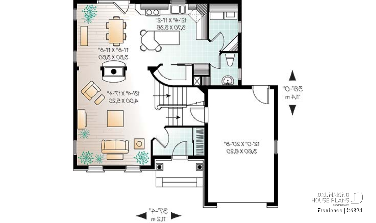 One-car garage. For a two-car garage, see plan 6824-V1.