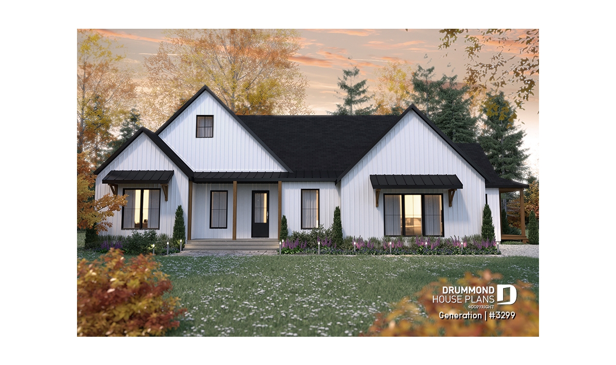 Trendy Inter Generational Modern Farmhouse house plan with 9 'ceilings throughout.