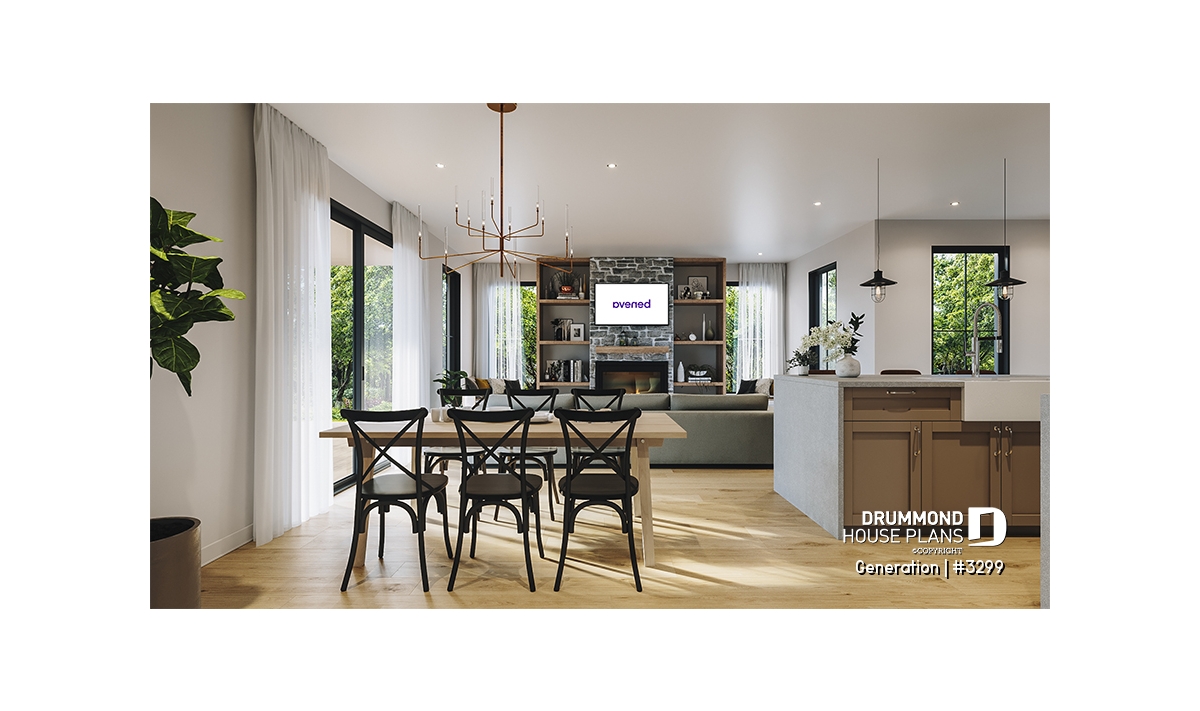The kitchen is open to the living room and dining room, and adjacent to a large pantry. The door providing access to housing # 2 could also accommodate a decorative bench or simply a work table for those who wish. The living room has a fireplace and space to install shelves on each side. Several windows are fitted therein bringing a beautiful natural light to this space. In addition, the living room also offers access to the private and sheltered terrace via patio doors or garden doors, at the owners' convenience.