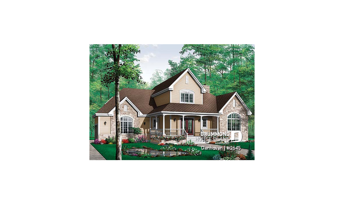 Offering 3 to 4 bedrooms, expansive open living areas, multiple covered porches and a discreet side-entry garage, the GLENHAVEN house plan (#2645) delivers a warm, spacious and timeless home designed for comfortable family living today and well into the future.