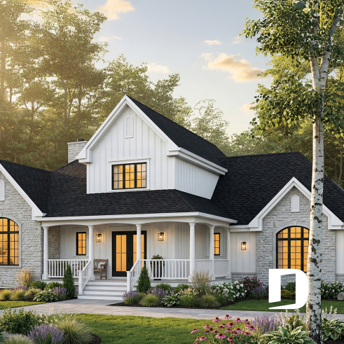 Spacious country-style house plan with a warm and well-balanced design.