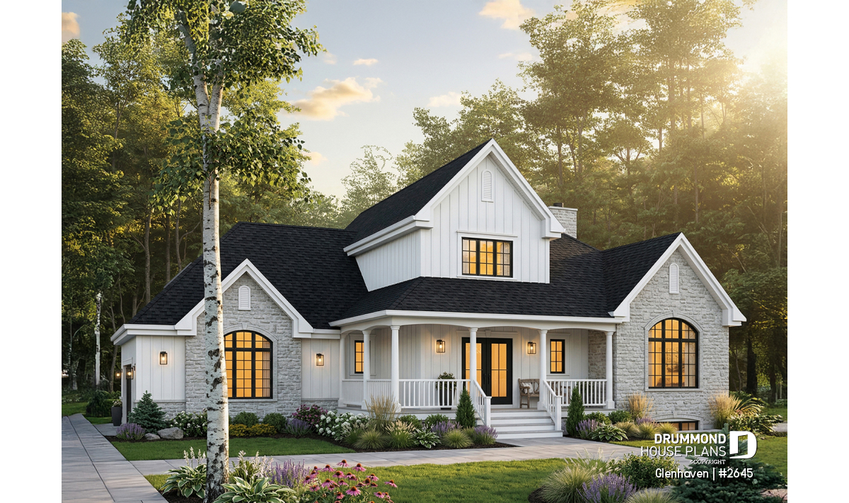 The GLENHAVEN house plan (#2645) perfectly blends classic country charm with spacious, family-oriented living inspired by traditional American home design. Warm, well balanced and thoughtfully organized, this home plan offers generous proportions, inviting outdoor spaces and an interior layout designed to support everyday comfort as well as memorable gatherings.