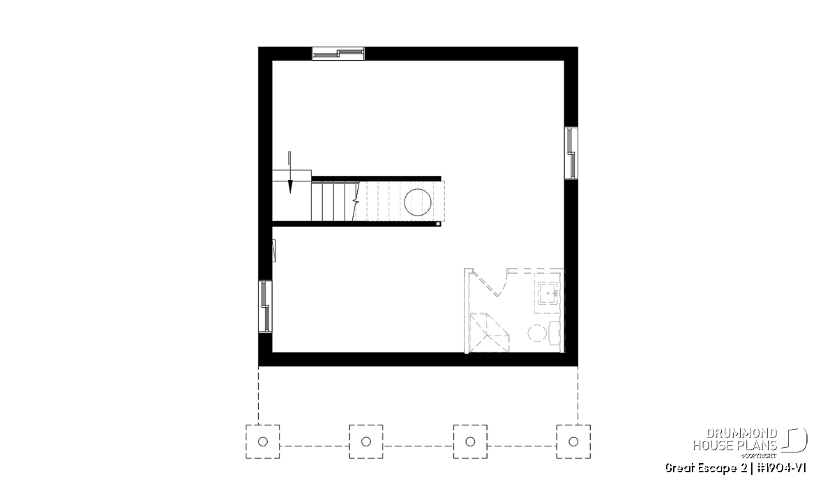 The Great Escape 2 (1904-V1) is a charming four-season cottage designed for nature lovers. It is perfect for a woodland property or a peaceful lakefront setting. Compact and efficient, this well-designed cottage offers 576 sq. ft. of comfortable living space.