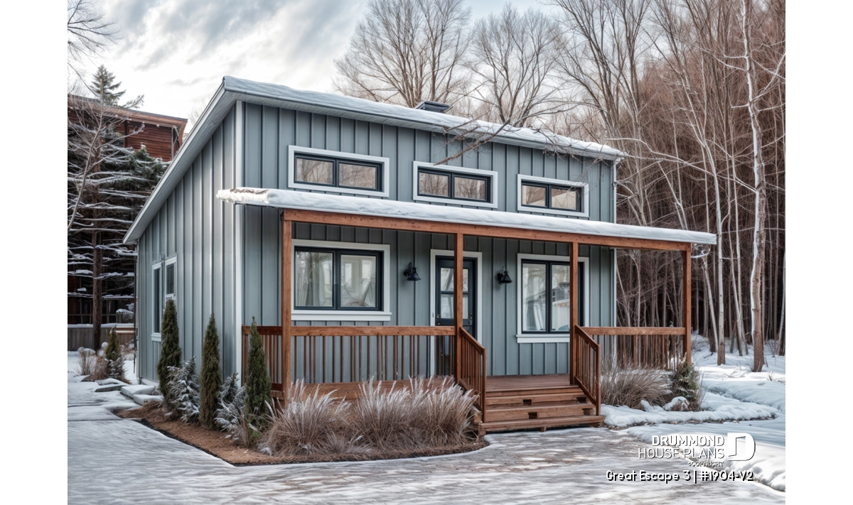 This modern 4-season chalet plan combines style, efficiency, and friendliness. An ideal choice for enjoying a warm, bright, and lasting living environment on a budget.