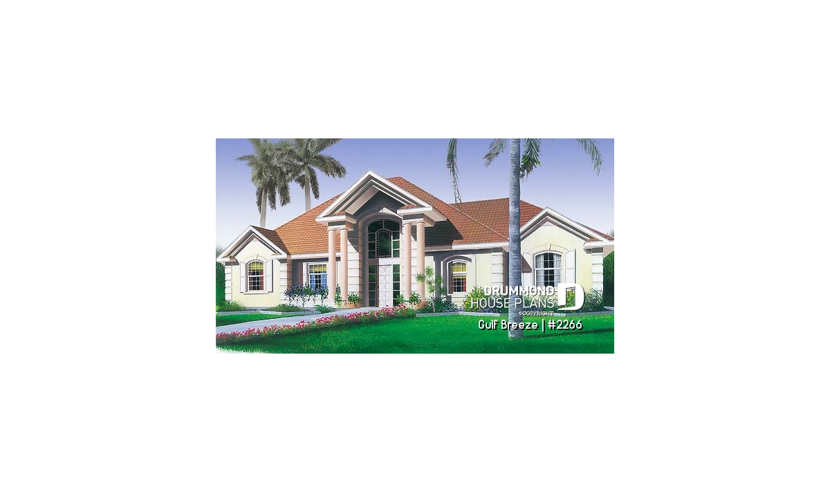 Side load garage, special ceiling treatments, double doors to master suite, double sinks in master suite bathroom, walk-in closet in one of the secondary bedrooms, abundant and special fenestration, front entry has large columns.