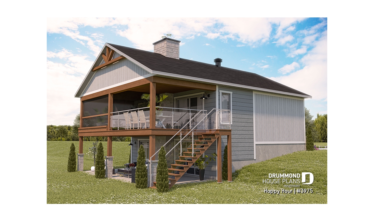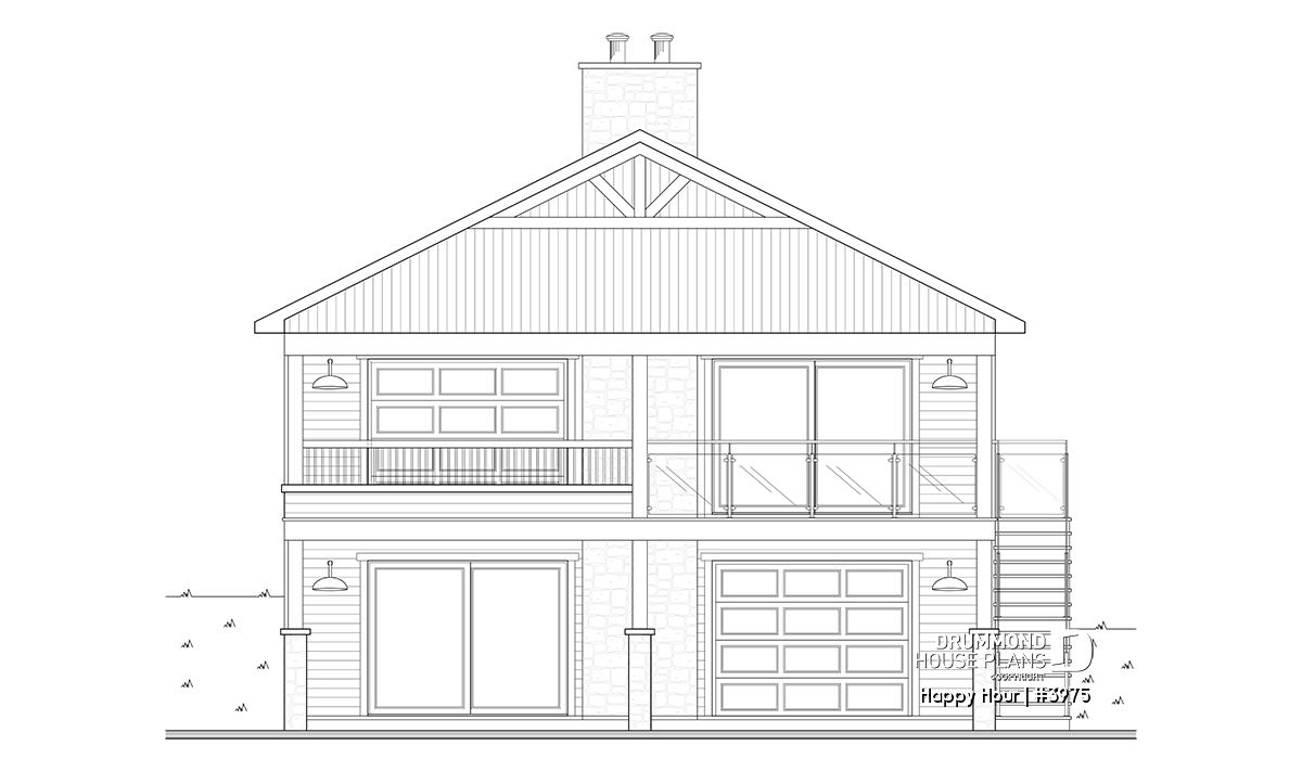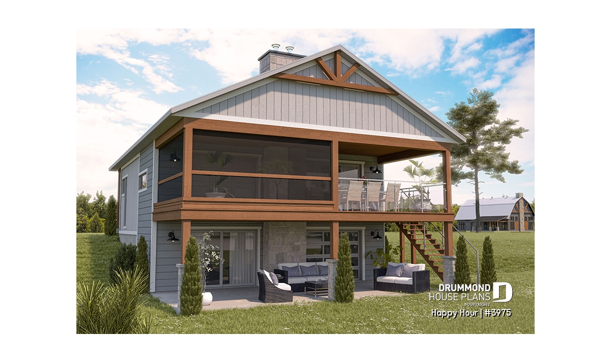 The Happy Hour (#3975) house plan is a contemporary chalet design created to deliver a complete relaxation experience, both indoors and outdoors. Designed to connect seamlessly with its natural surroundings, this plan stands out for its multiple living spaces and a layout focused on comfort, flexibility and enjoyment.