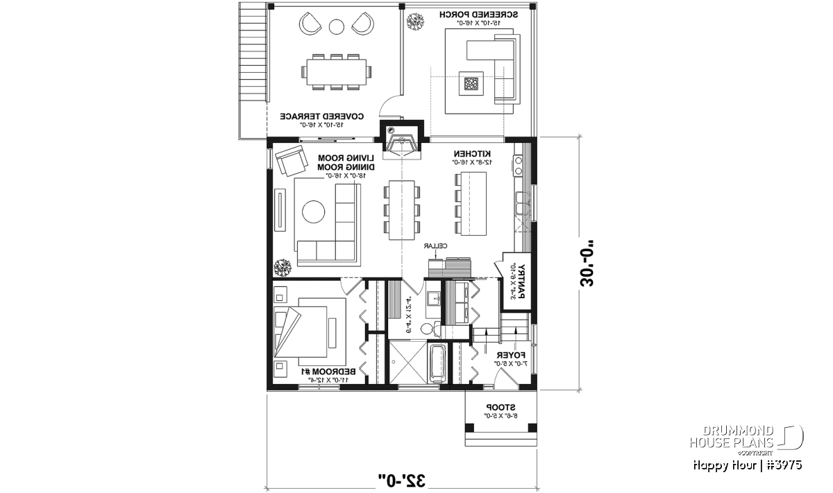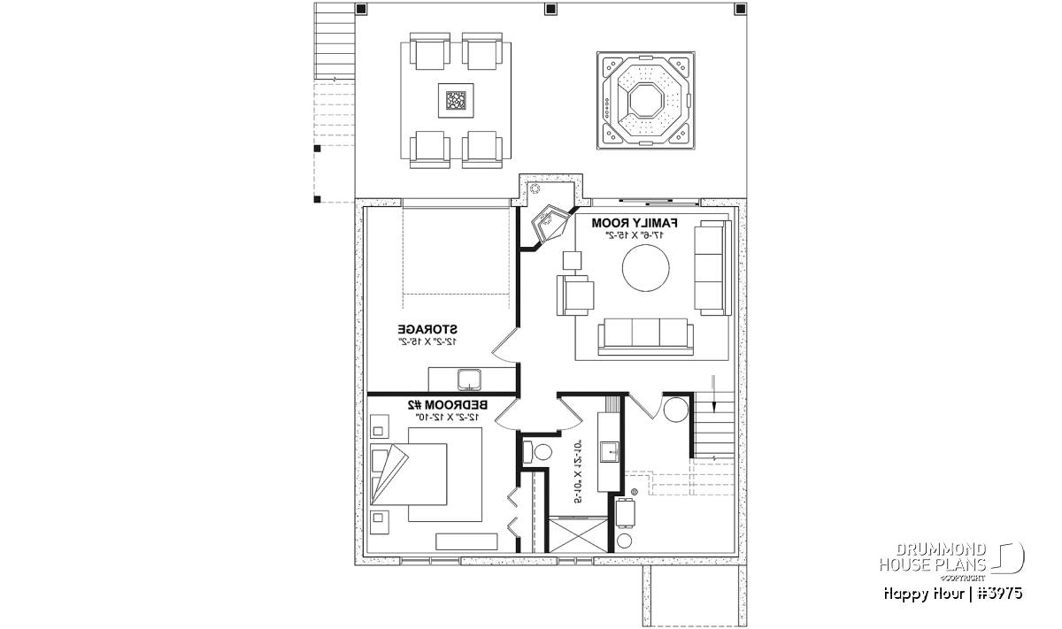 Outdoor living is a key feature of the Happy Hour (#3975) plan. A screened porch and a covered terrace, accessible directly from the living room, allow homeowners to enjoy the outdoors comfortably in various weather conditions. Beneath the main-floor terrace, a large covered patio offers additional space that can be customized as a lounge area, spa zone or other relaxation-focused use.