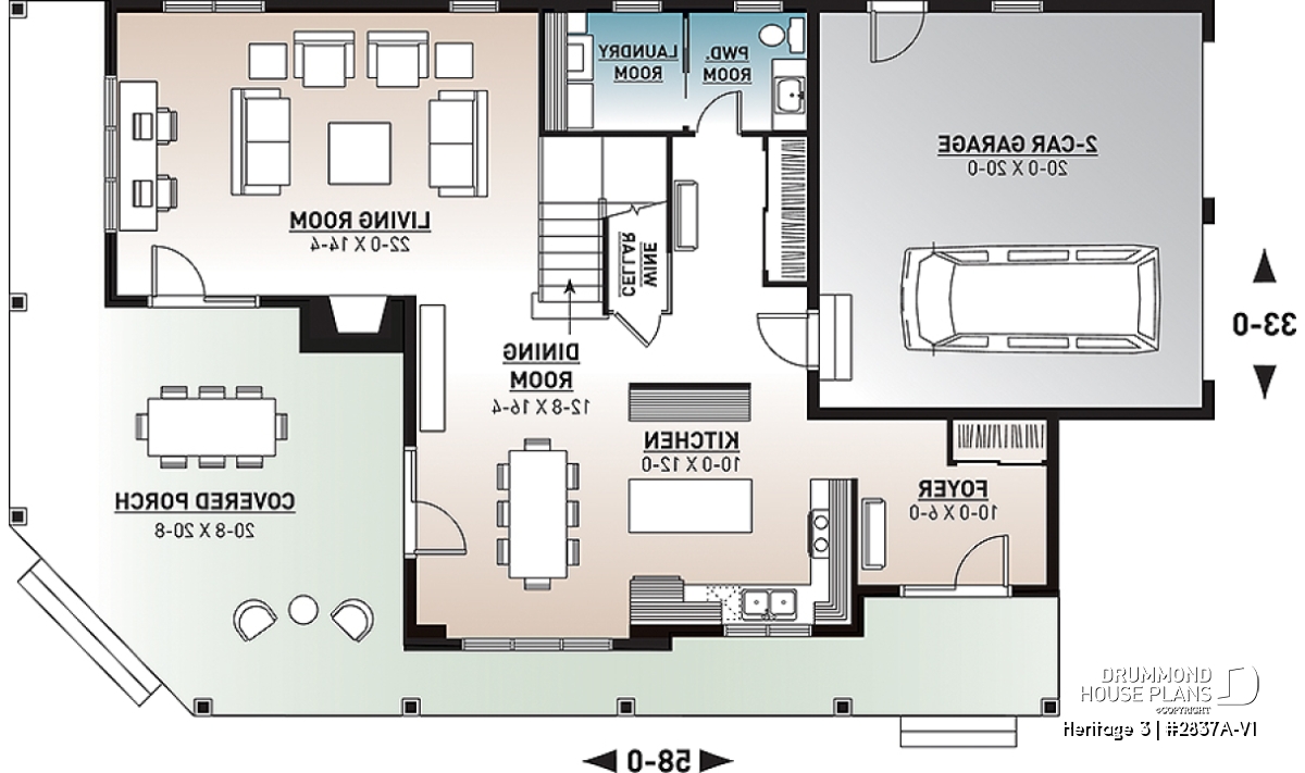 The plan includes a crawlspace foundation but alternate foundations are available if more living area is desired.