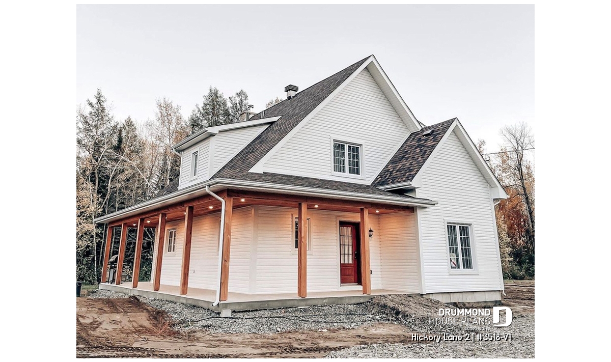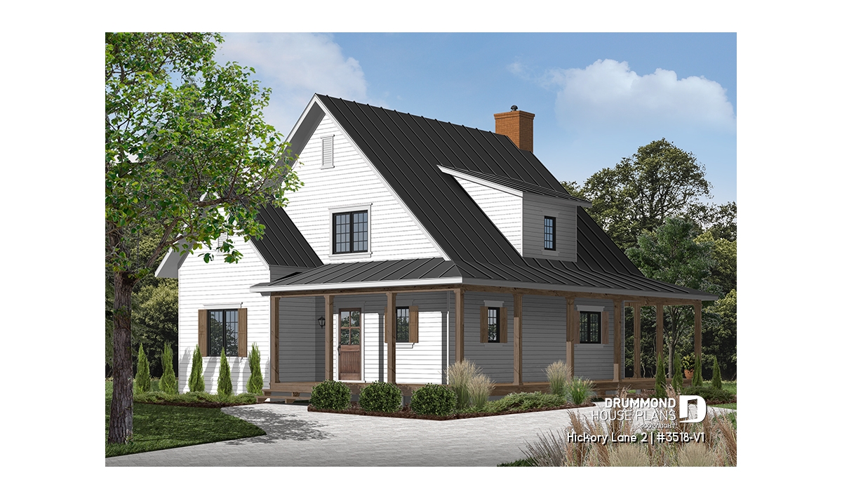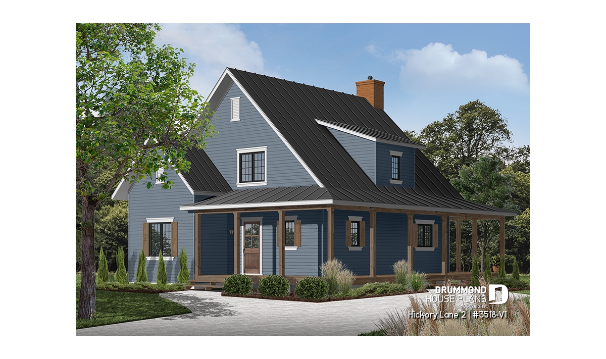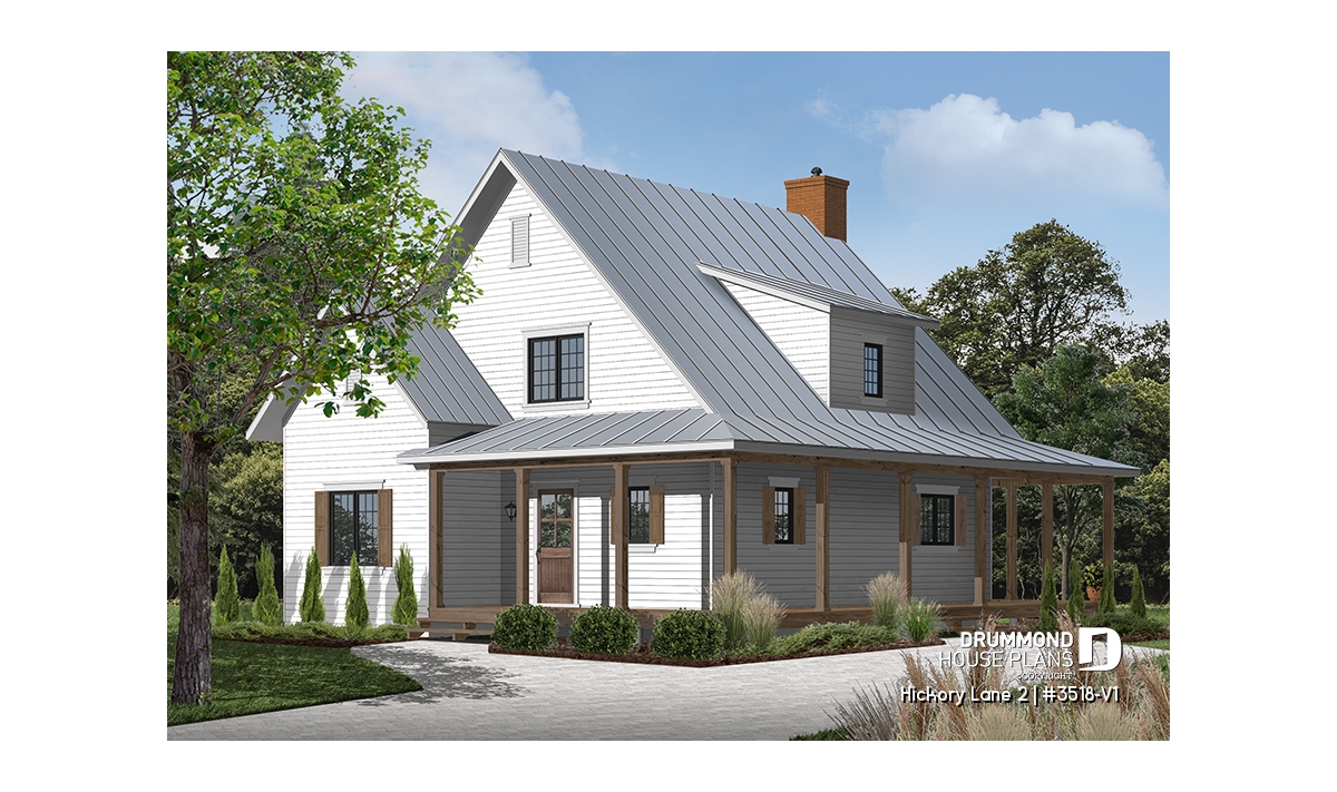 Discover an inviting and thoughtfully expanded Modern Farmhouse plan that blends warmth, practicality, and timeless rural charm. Inspired by the highly sought-after Hickory Lane design, this enhanced version offers nearly 250 sq.ft. of additional living space, thanks to a strategic 4-ft lateral expansion that elevates comfort on both the main and upper floors.