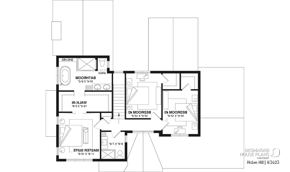 Two secondary bedrooms, each with a walk-in closet, share a shower room.