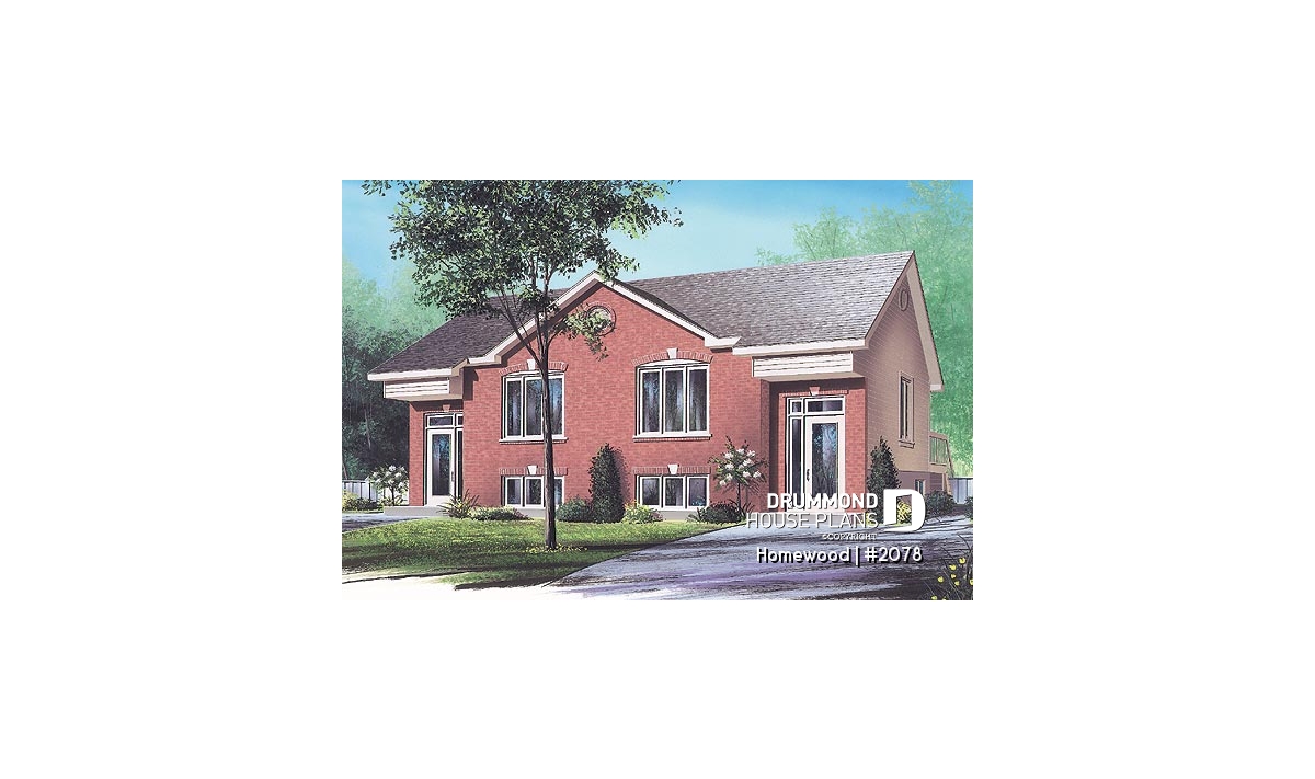 front - BASE MODEL - Traditional 3 bedroom duplex house plan, spacious family room,  laundry on main floor, split entry - Homewood